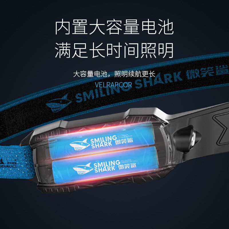 📚 微笑鲨头灯强光j超亮充电户外夜钓鱼专用感应照明灯头戴式超长续