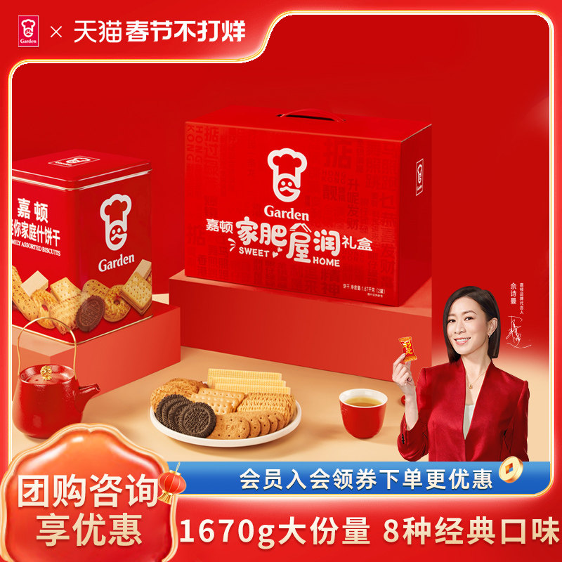 📚 嘉顿家肥屋润礼盒1670g曲奇饼干组合过年送礼家庭什饼干835g*2罐
