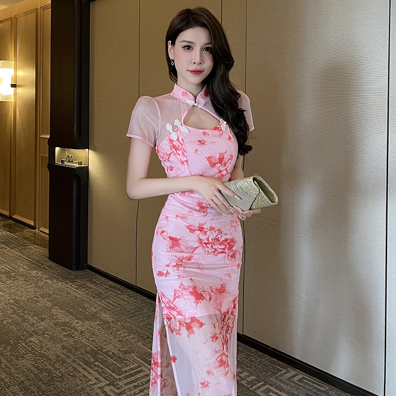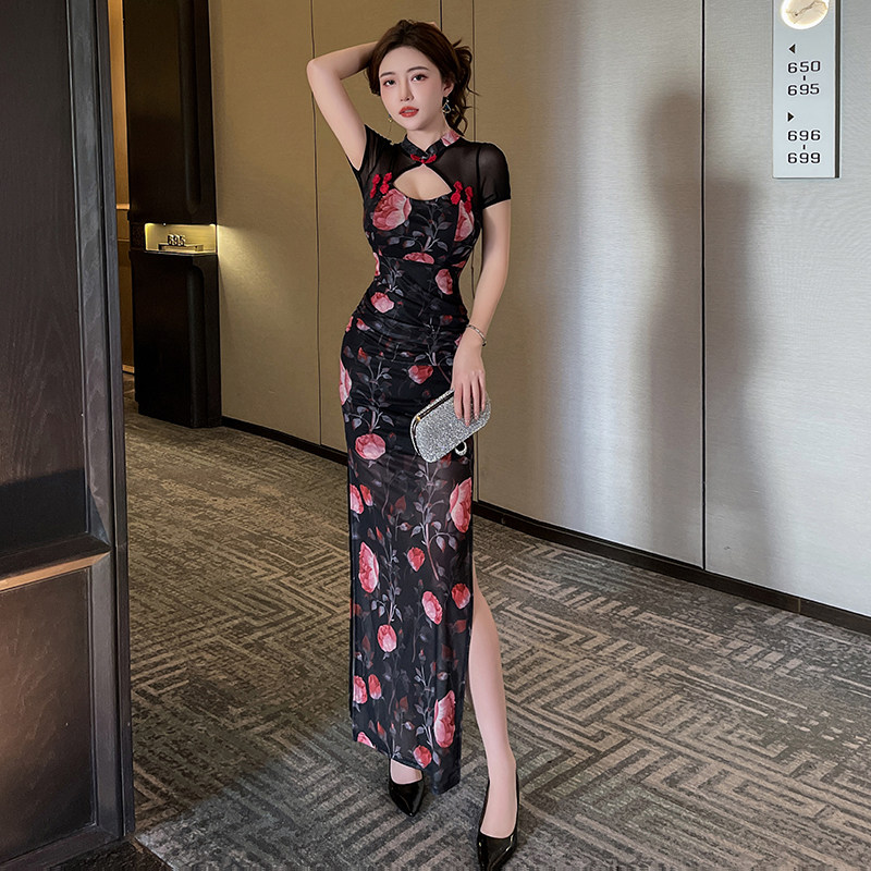 📚 性感时尚SPA柔式按摩足浴疗养生技师中式印花旗袍连衣裙工作服