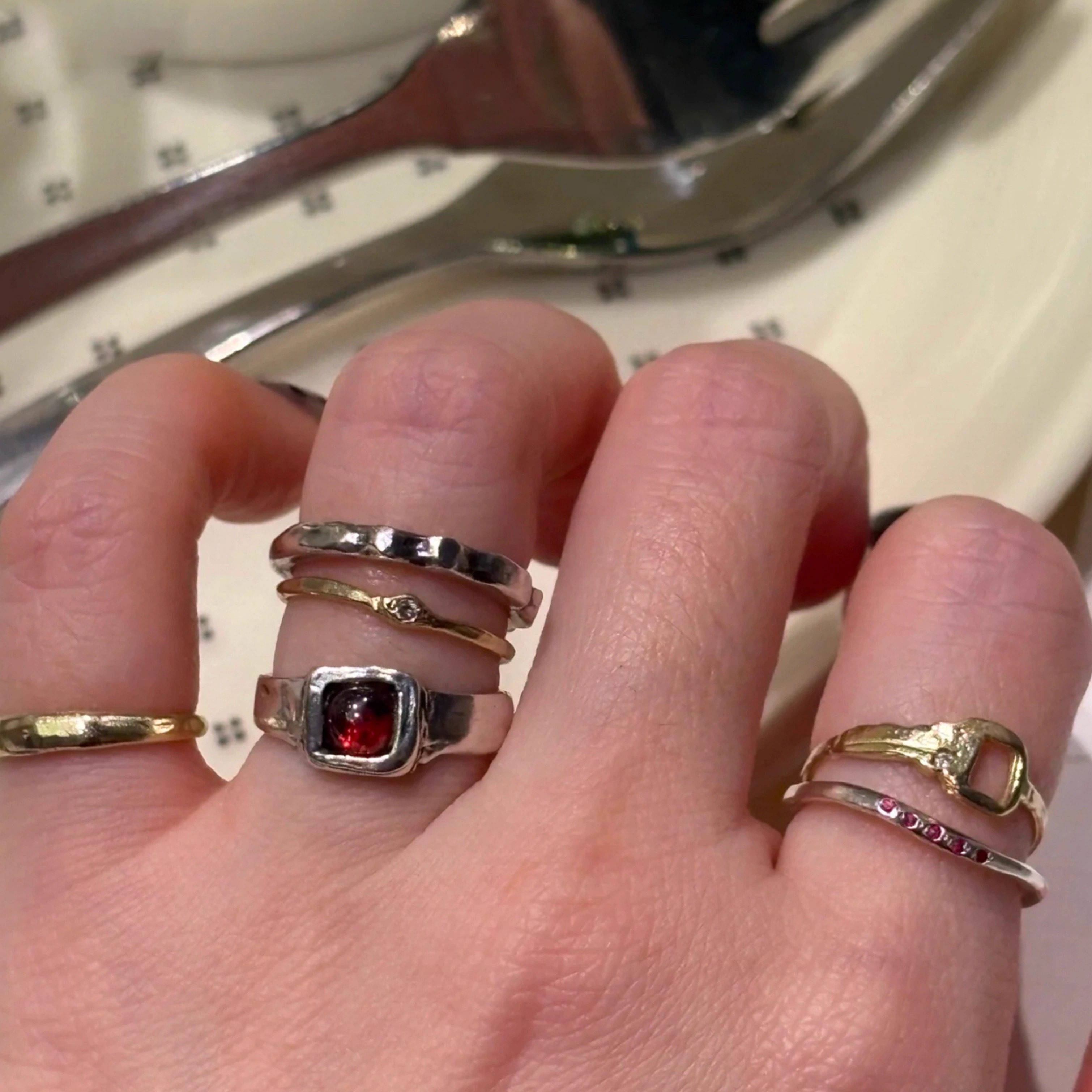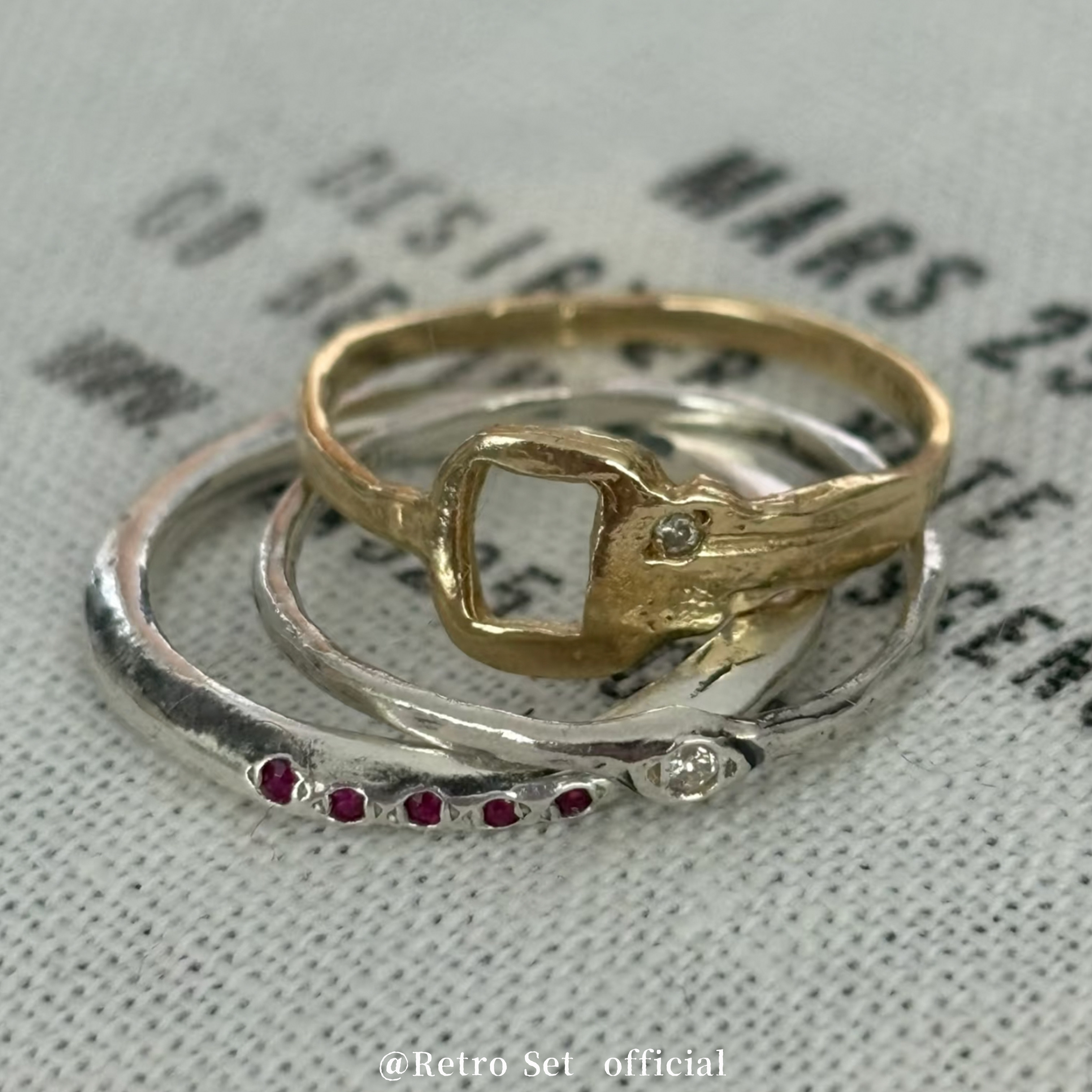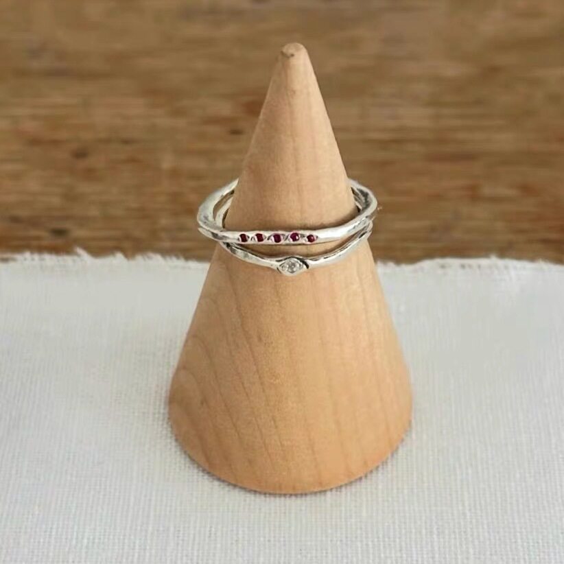 📚 定制mars25韩国小众设计s925纯银手作感波浪小宝石戒指基础叠戴