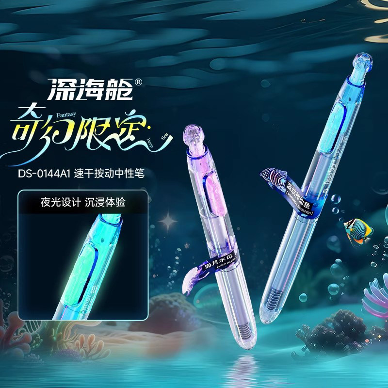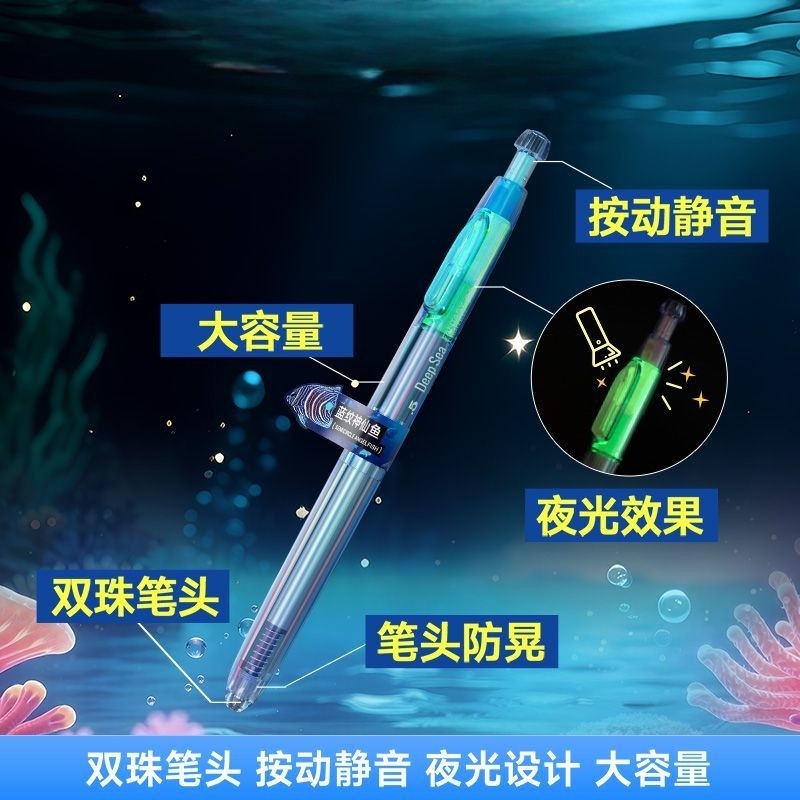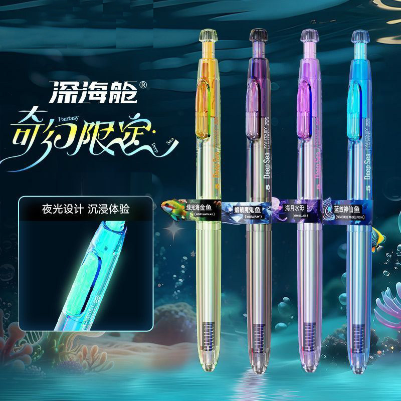 📚 新款深海舱奇幻限定顺滑速干按动中性笔双珠静音笔芯0.5大容量替芯学生专用夜光趣味中性笔