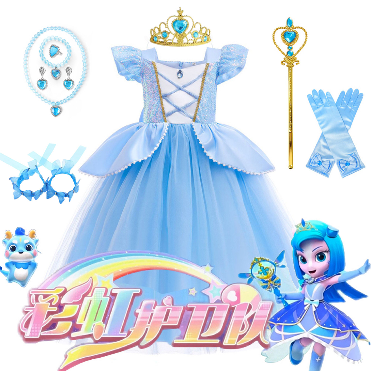 📚 女童彩虹护卫队寒露公主裙灰姑娘仙帝暮光连衣裙万圣节表演服装裙