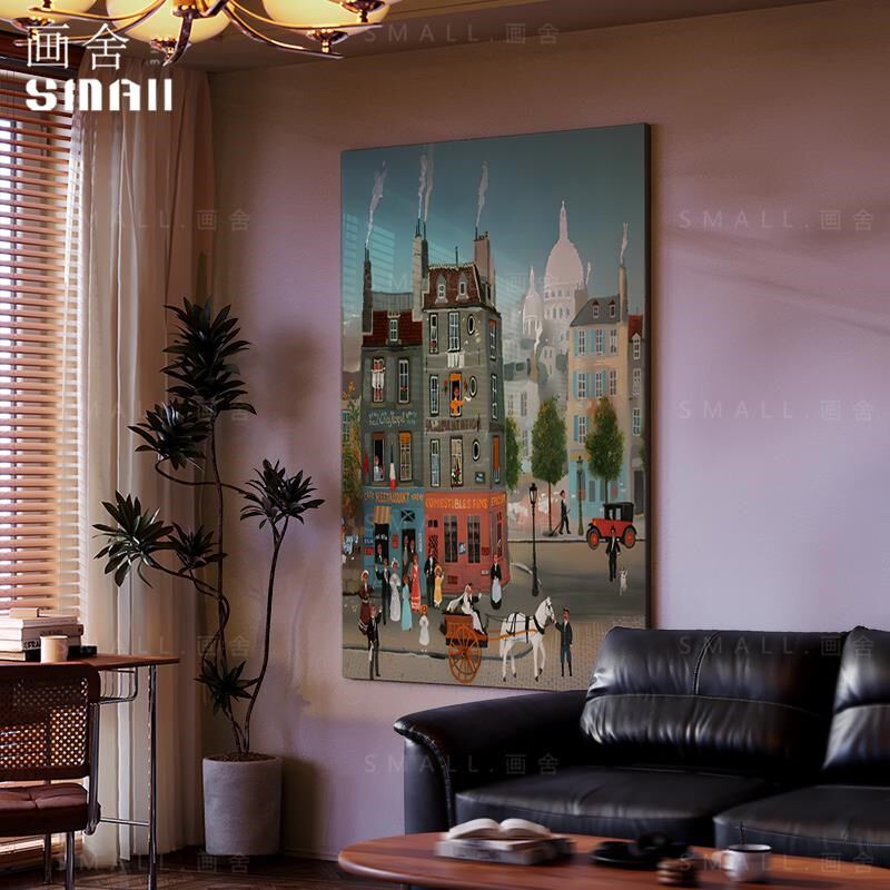 📚 现代风客厅装饰画玄关漆画挂画餐厅卧室背景繁华街道新中式肌理画