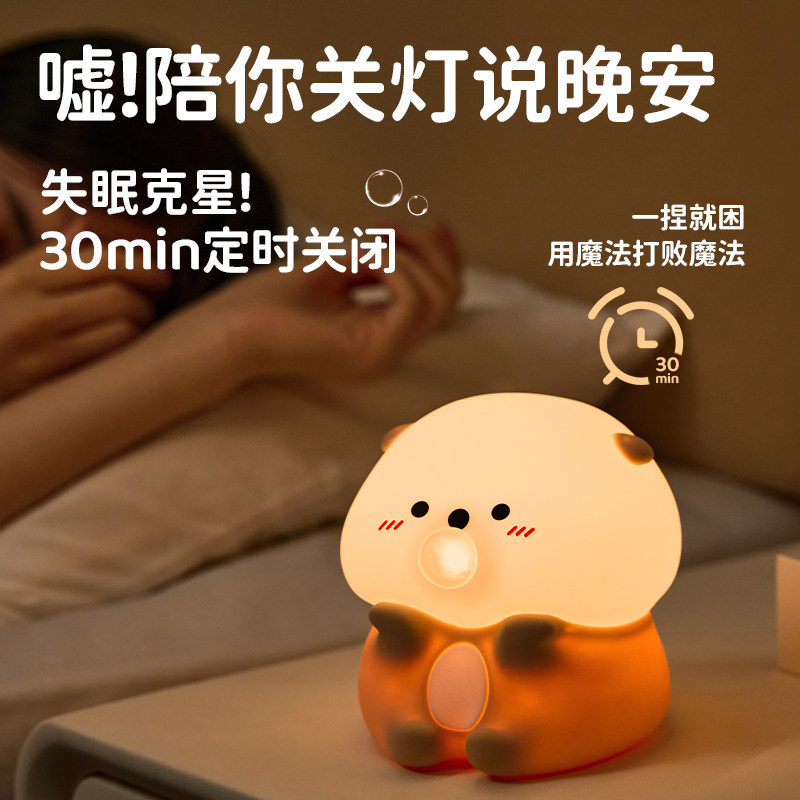 📚 Sea Otter Lamp | 吹泡泡の海獭 治愈系小夜灯 拍打感应 延时关灯
