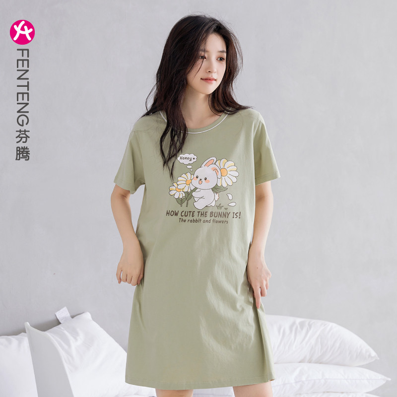 📚 芬腾睡裙女纯棉夏季薄款短袖睡衣女款夏款全棉可爱连衣裙夏天短裙