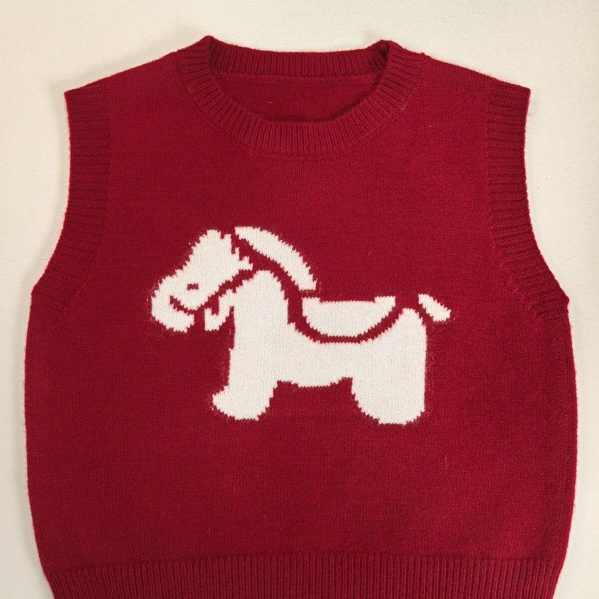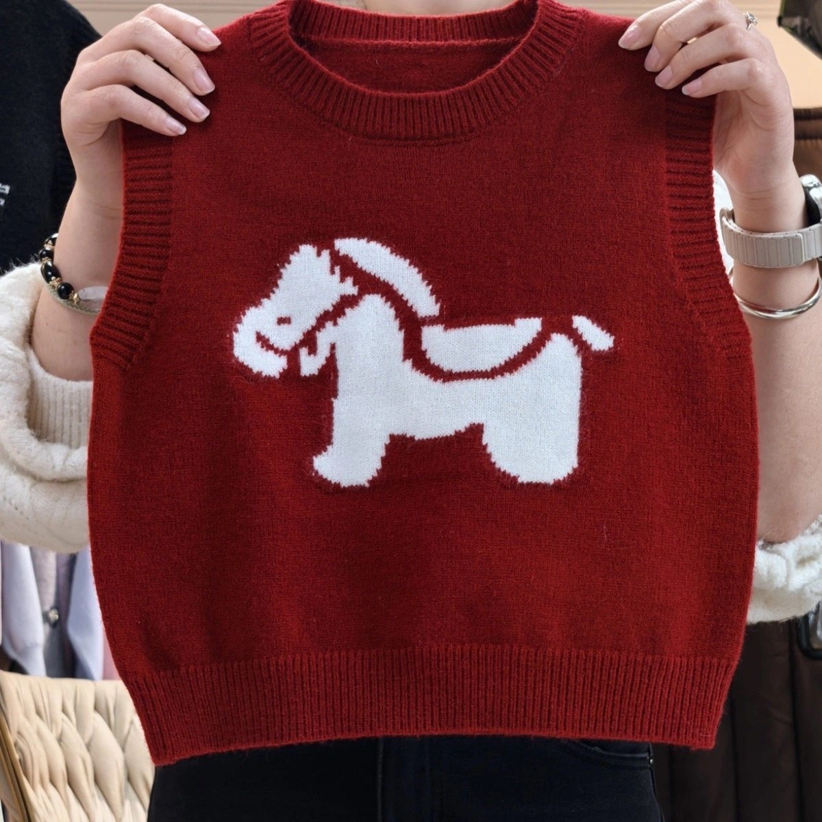 📣宝宝们,你们还在等什么呢?快来入手这款【马到成功】儿童针织马甲吧!让你的宝宝在新年里成为最亮眼的焦点!