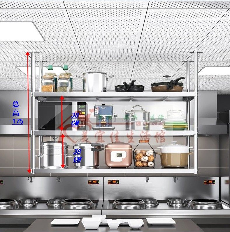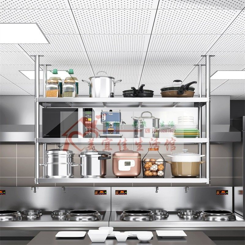 📚 厨房多层碗盘架壁挂式置物架2不锈钢上墙吊架饭店调料3架悬挂墙架