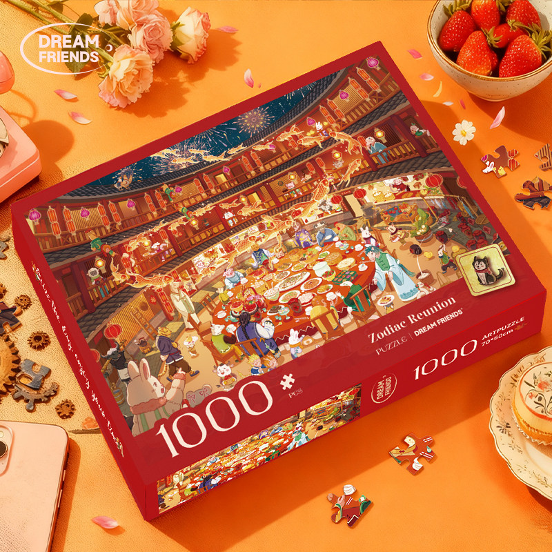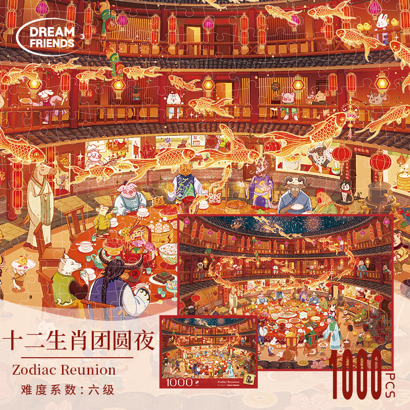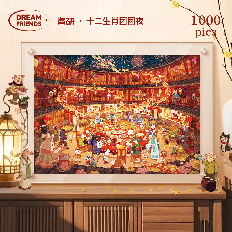 📚 Dreamfriends肯研十二生肖团圆夜烫金拼图1000片马年过年新年礼物