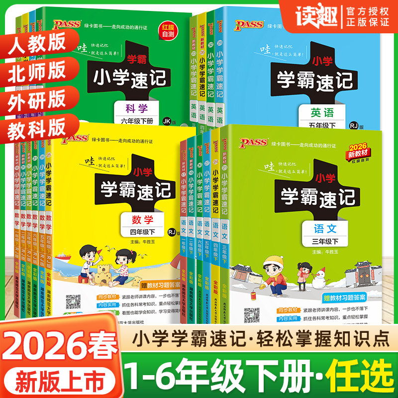 📚 2026新版小学学霸速记科学语文一二三年级四年级五年级六年级上册下册科学道德与法治数学英语教科人教版苏教北师大版同步练习册