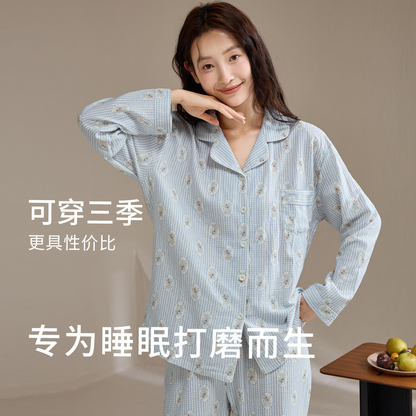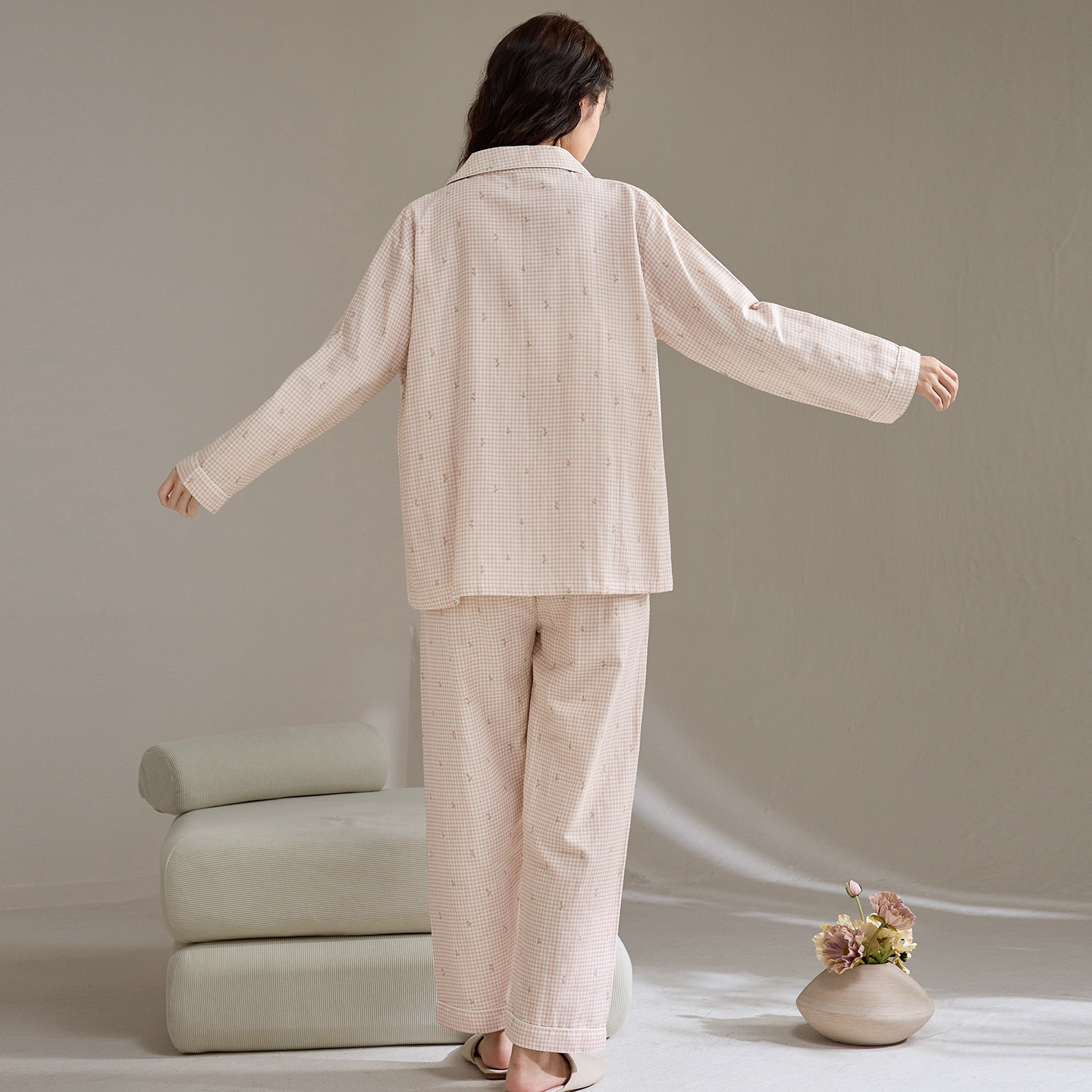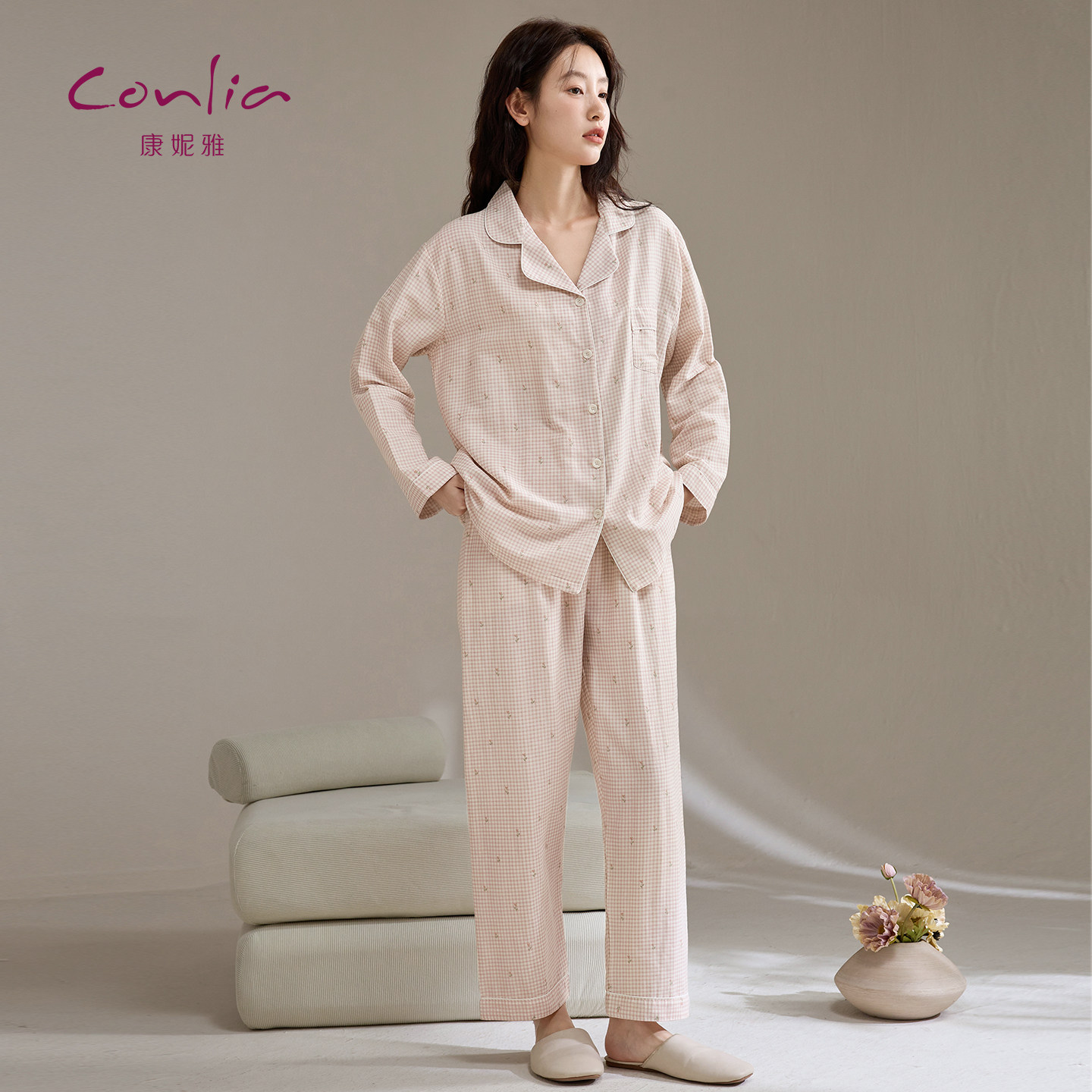 📚 康妮雅睡衣女春秋款纯棉棉纱长袖长裤全棉梭织双层纱家居服套装