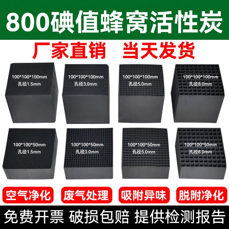 📚 蜂窝活性炭方块800碘防水烤漆房工业环保吸附箱废气过滤特种碳砖