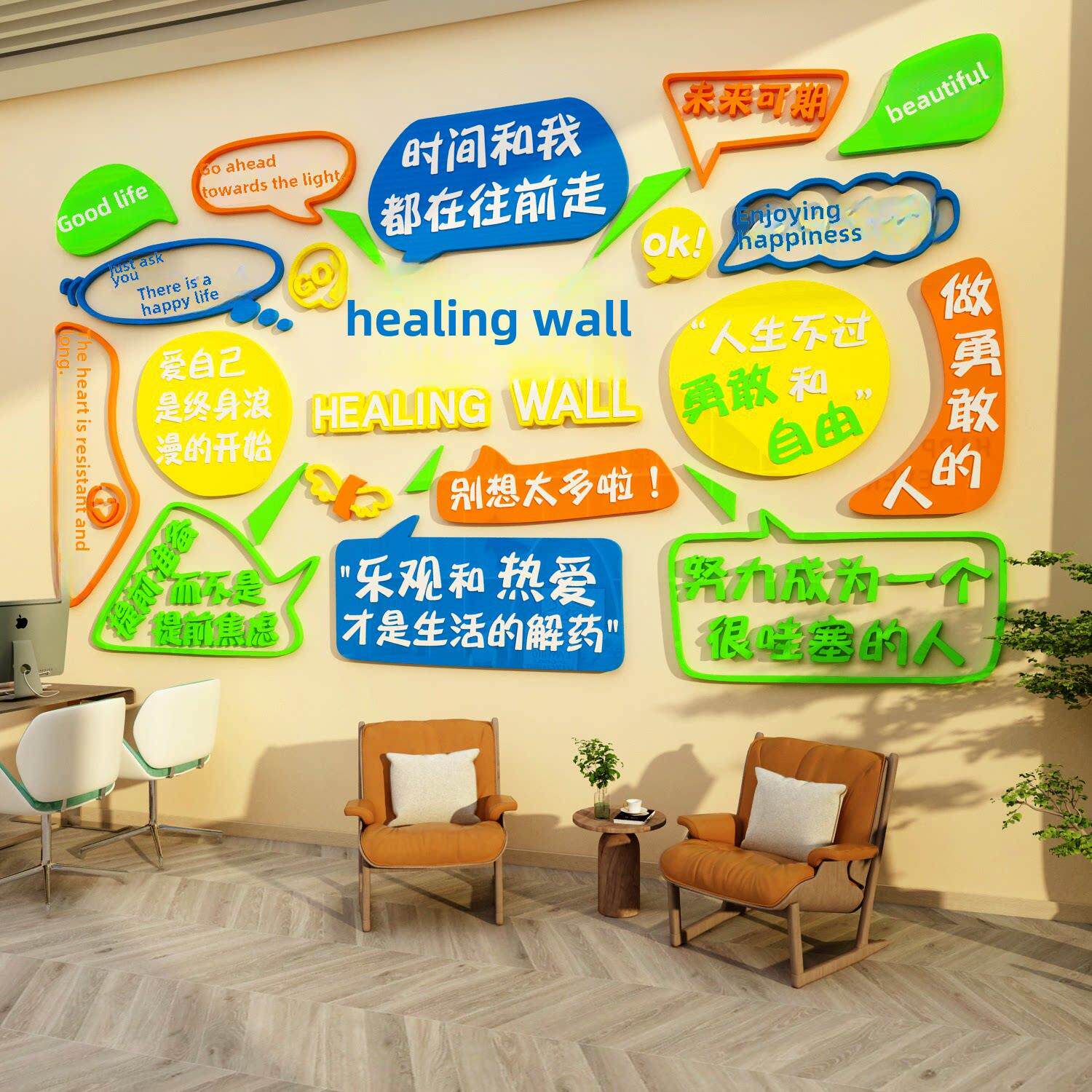 📚 情绪稳定心理角咨询室布置绘画贴纸精神站装修健康文化治疗空间墙