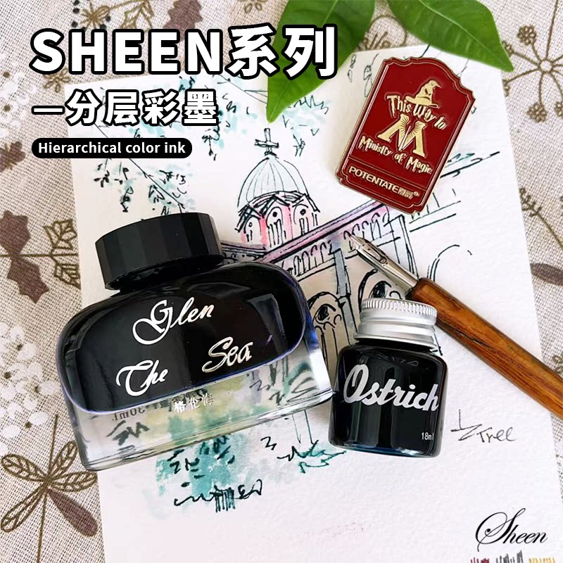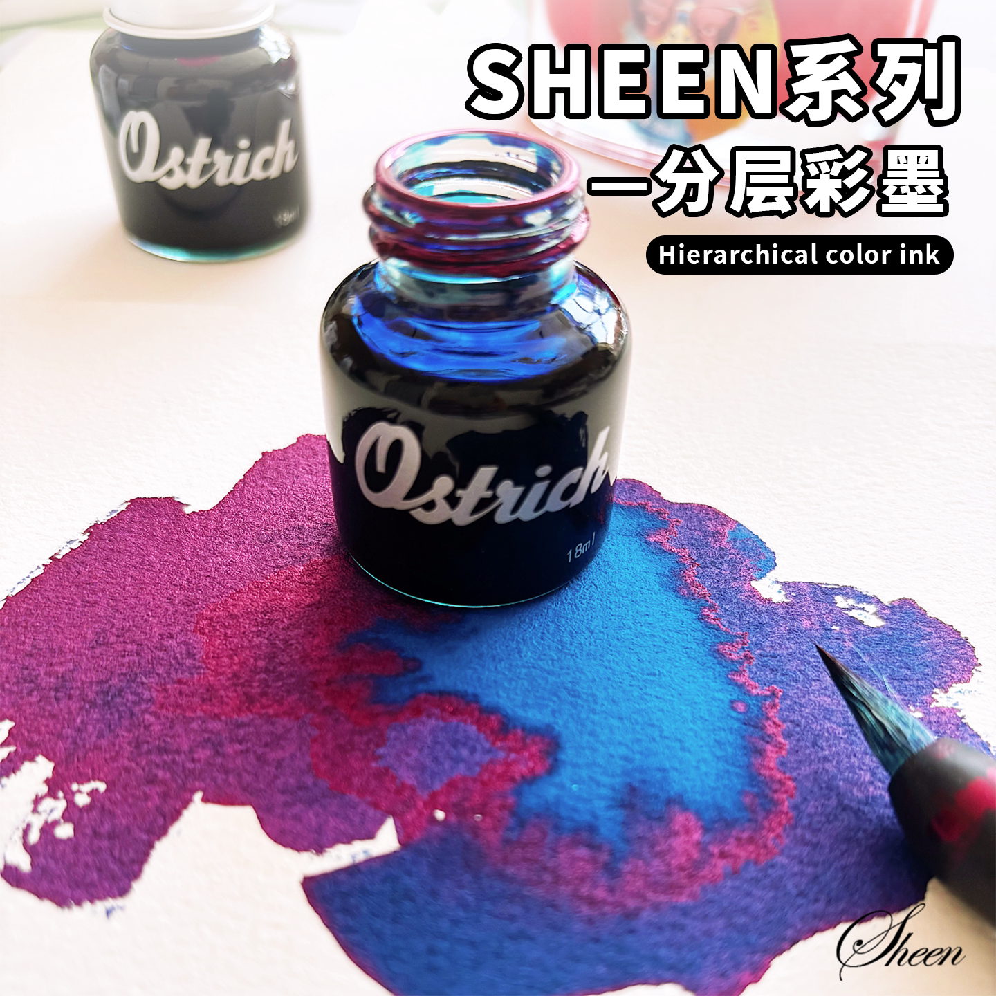 📚 ostrich鸵鸟墨水sheen彩墨分层渐变金属色爱琴海格伦海非碳素钢笔用颜料金粉手账古风水彩颜料型绘画彩色墨水