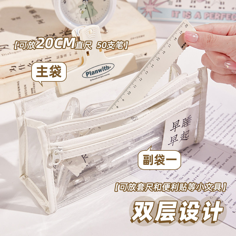 📚 透明双层笔袋考试专用大容量中考高考文具袋简约ins风日系女小学生高颜值文具盒女孩男生初中高中生铅笔袋