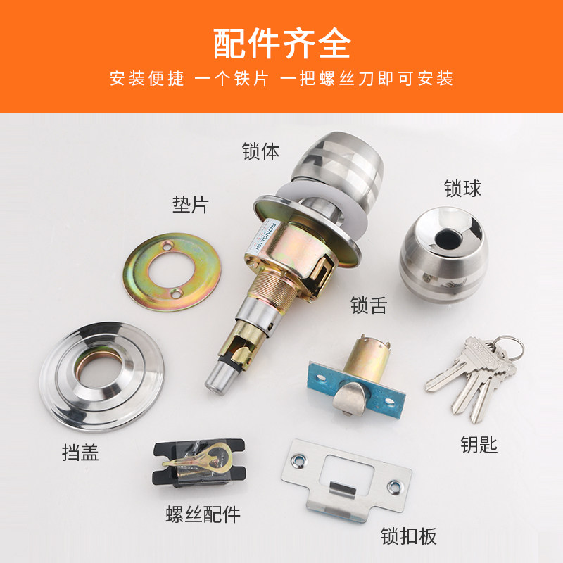 📚 荣力斯球形锁房门锁室内卧室不锈钢球形门锁卫生间通用球型锁球锁