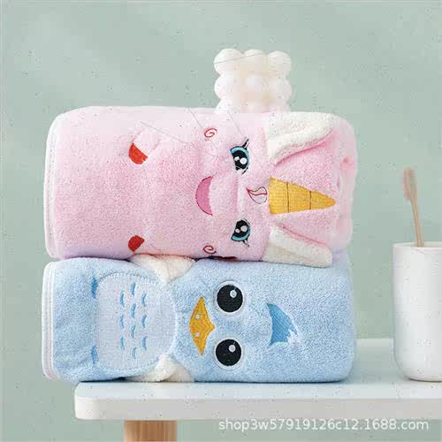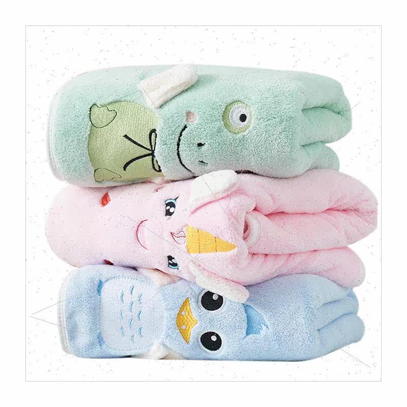 📚 Coral velvet towel Children cartoon animal embroidery thicke