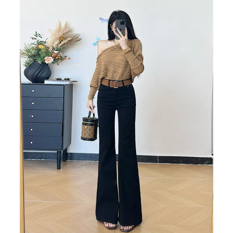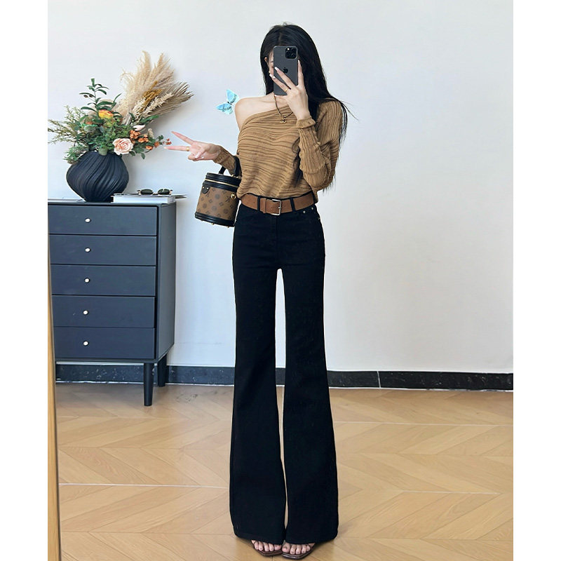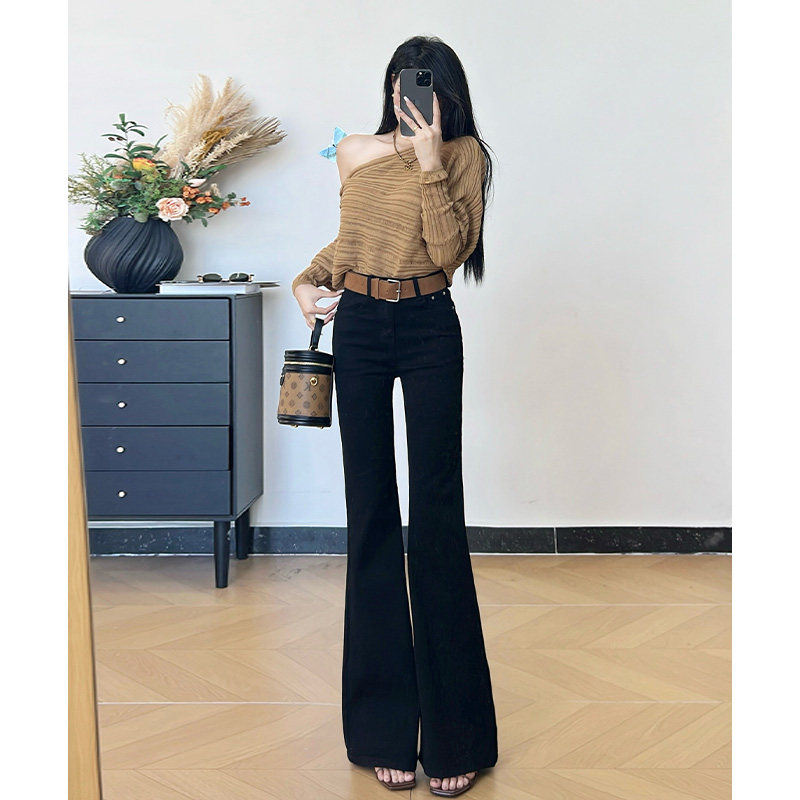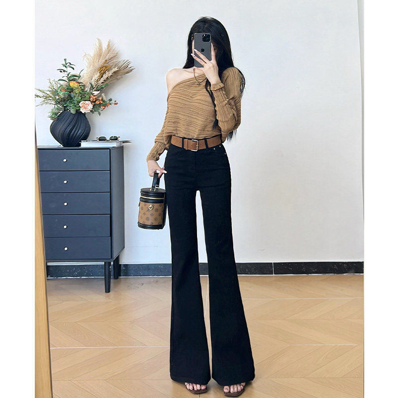 📚 乔栈秋冬加绒黑色设计感修身微喇牛仔裤女高腰提臀显瘦小个子穿搭