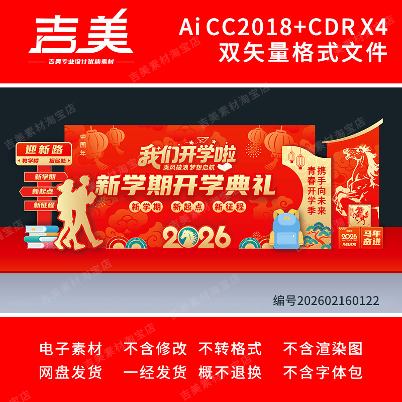 📚 大学初高中开学舞台背景2026马年幼儿园开学典礼打卡拍照美陈布置