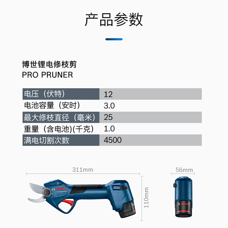 📚 博世12V园林园艺电动剪刀家用花枝果树剪枝机修枝剪Pro Pruner