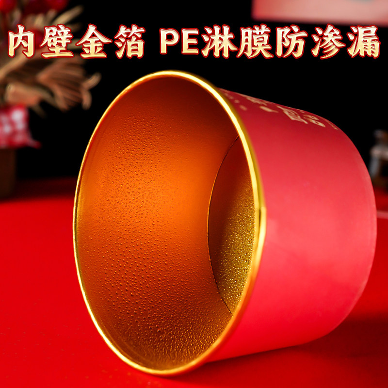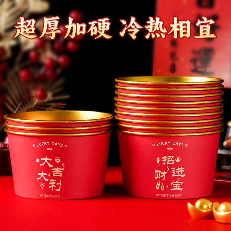 📚 纸碗一次性2026马年春节过年新年加厚餐盒喜庆婚宴金箔一次性纸碗