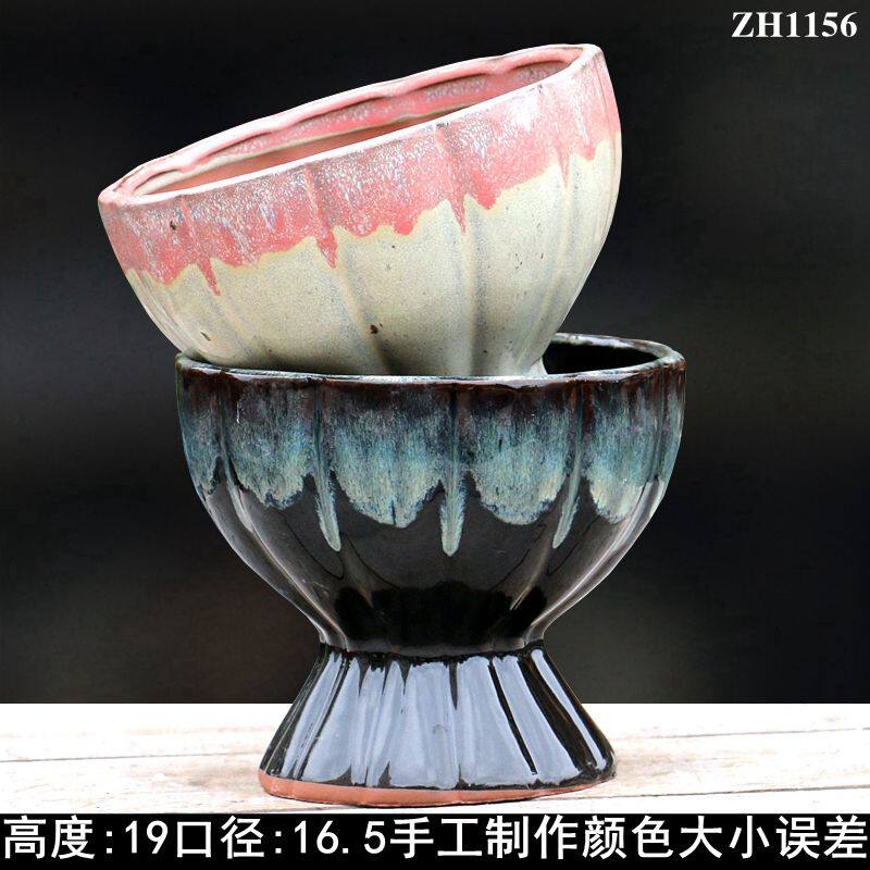 📚 组合创意多肉花盆陶瓷蘑菇高款老桩盆景大口径悬崖陶瓷特价火锅盆