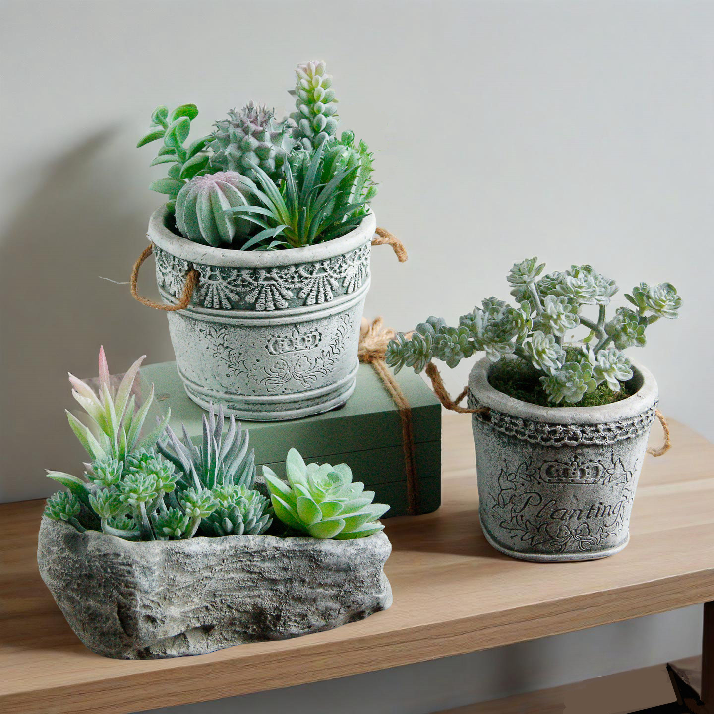 📚 创意仿真多肉植物盆栽组合摆件室内桌面盆景假花绿植造景装饰品