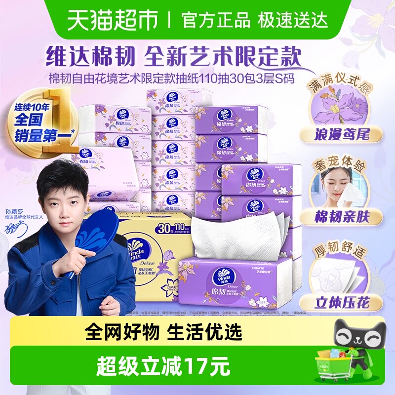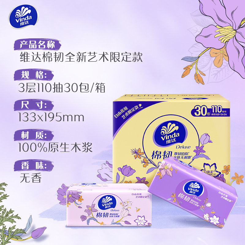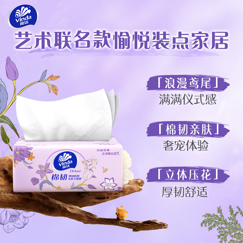 📚 维达棉韧自由花境艺术限定款抽纸3层S码家用实惠整箱装
