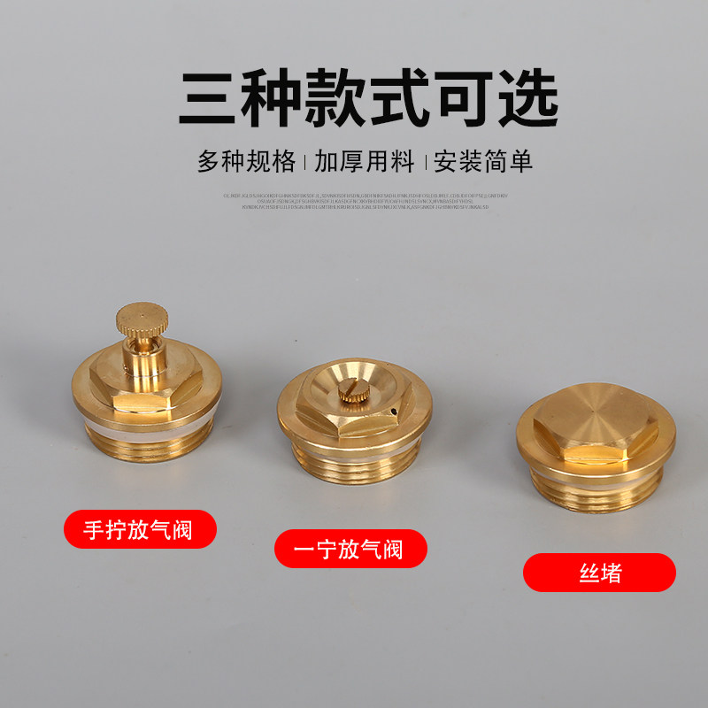 📚 暖气片排气阀全铜手拧散热器排污跑风放气阀丝堵头4分6分1寸包邮