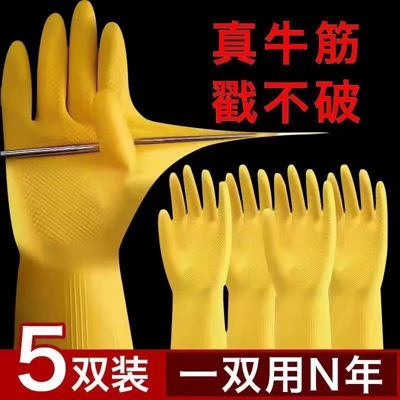 📚 加厚防护橡胶手套加长牛筋乳胶皮洗碗防水耐磨干活用的手套劳保女