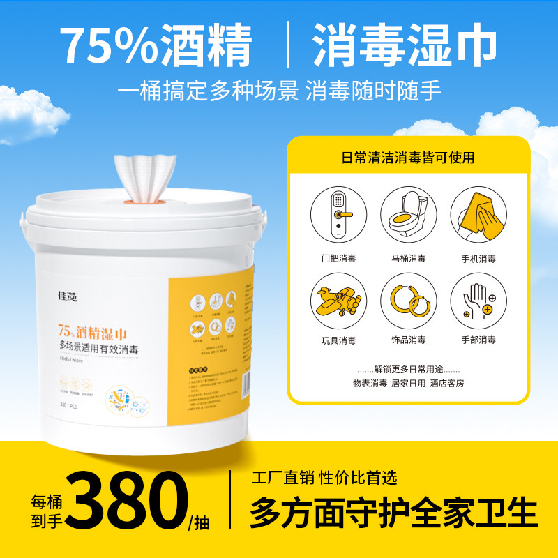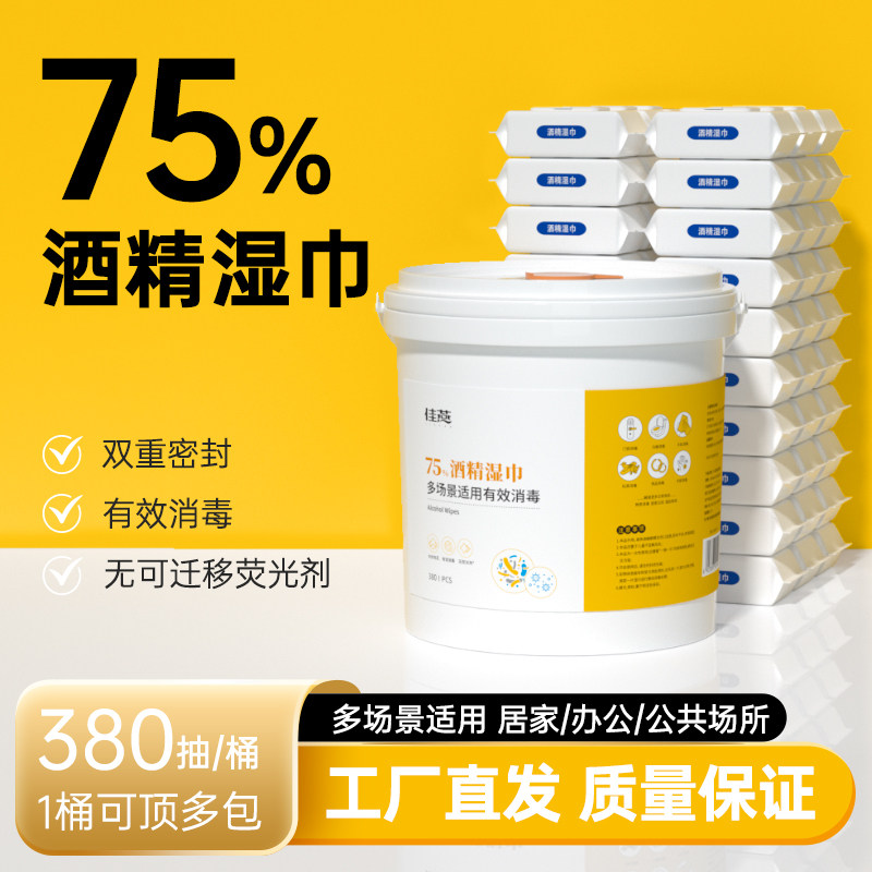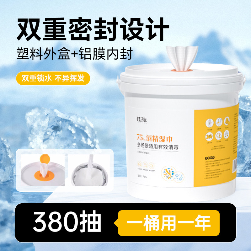📚 酒精消毒湿巾桶装家庭装75杀毒杀菌清洁卫生湿纸巾家用大桶抽取式