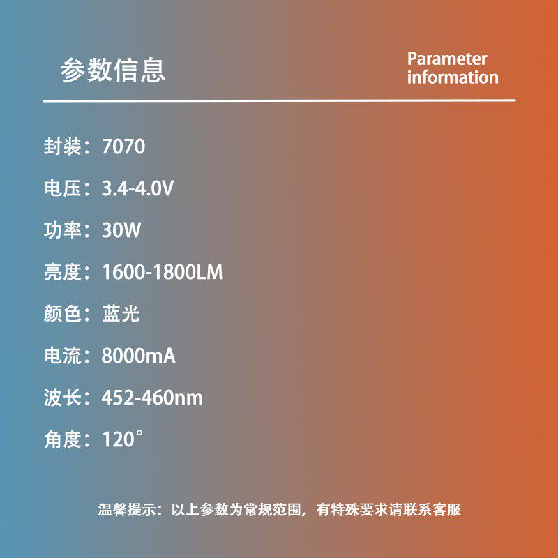📚 7070蓝光雷射灯珠30W大功率LED灯芯激光炮钓鱼灯舞台灯手电筒专用