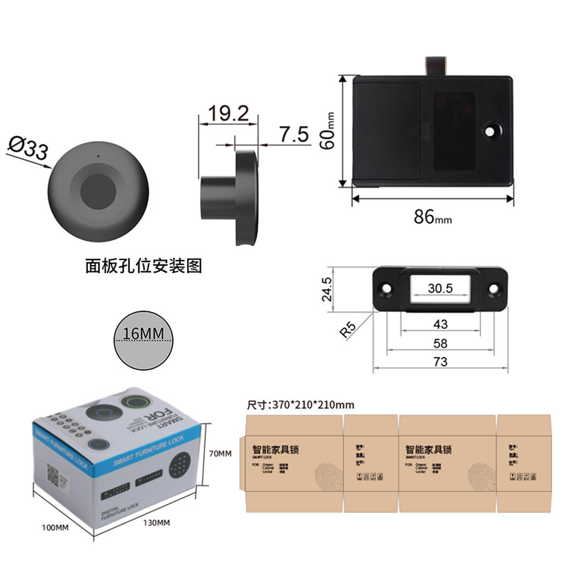 📚 奇点F109S指纹抽屉锁智能柜门锁储物柜指纹锁免改孔锁对开门锁