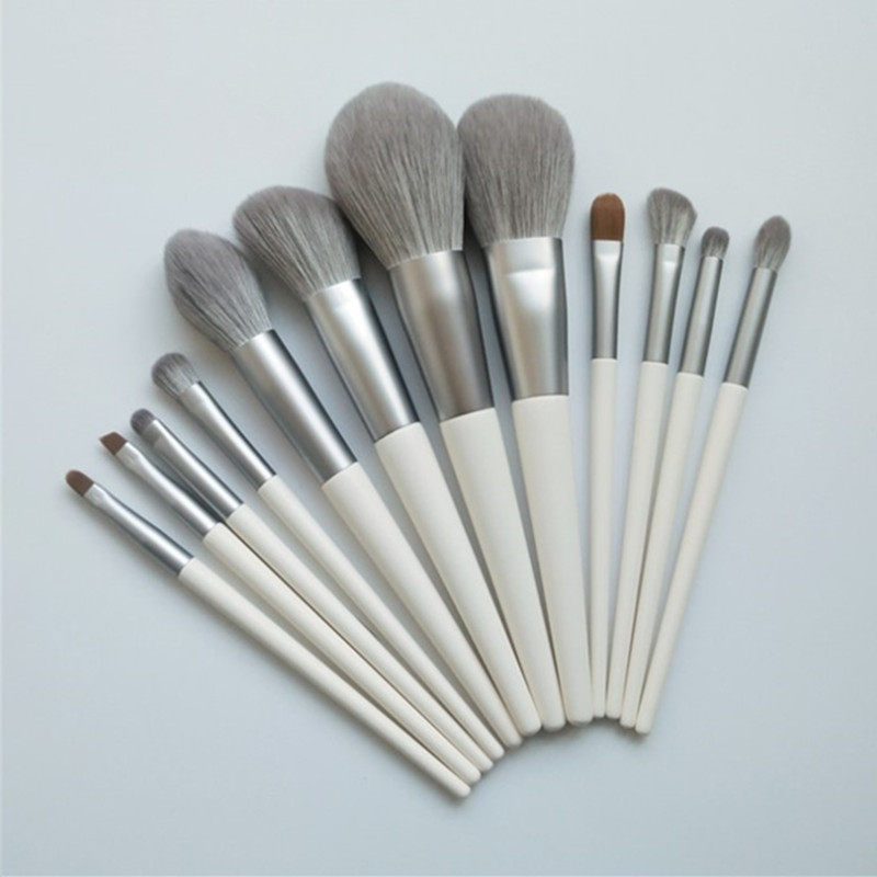 📚 沫桑。气质奶灰超软刷毛12只化妆刷套刷散粉刷腮红刷眼影刷收纳包