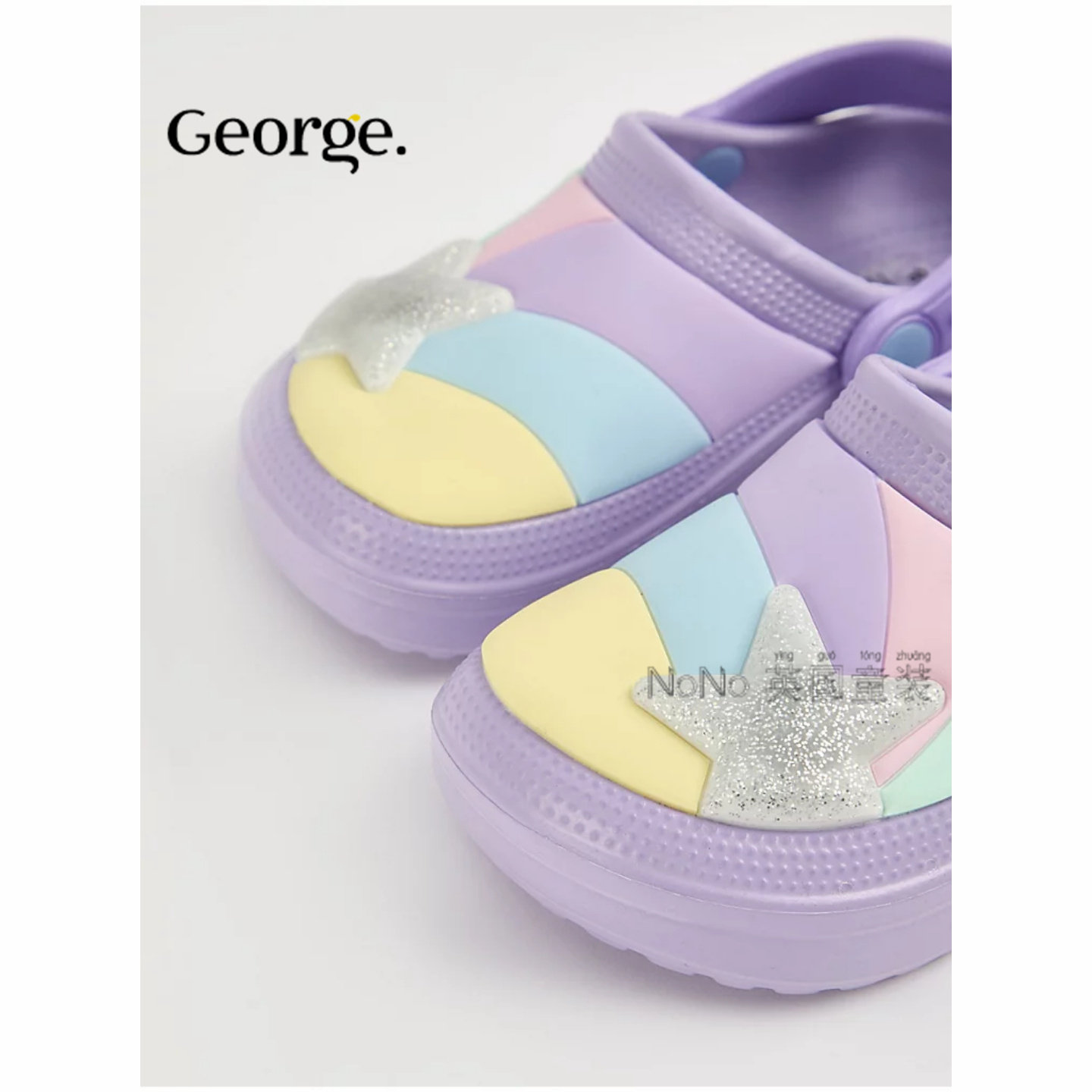 📚 英国乔治George代购女童紫色星星包头凉拖鞋凉鞋洞洞鞋1276598