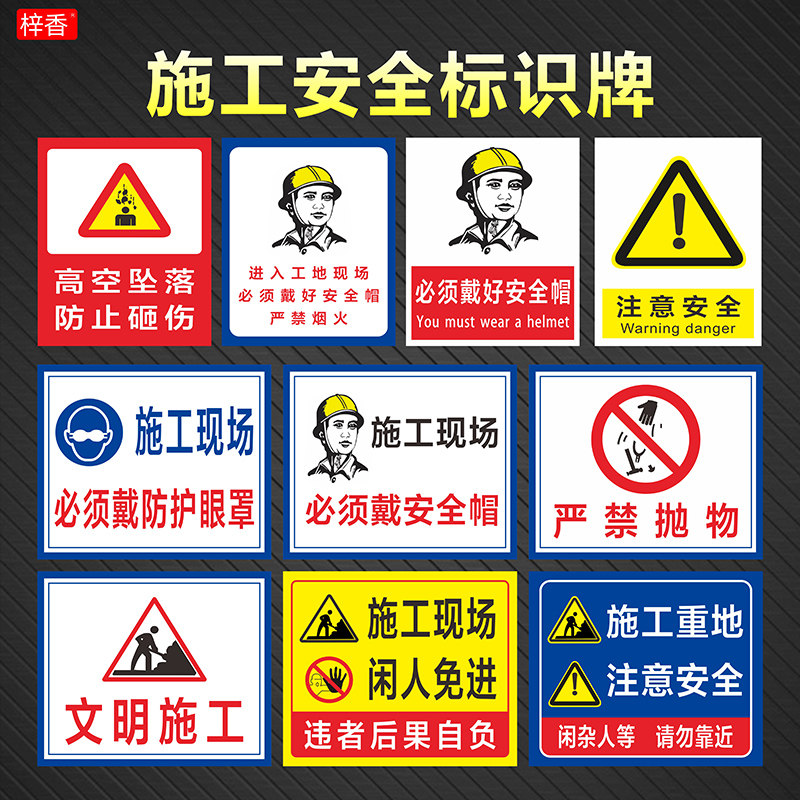 📚 建筑工地标识牌施工现场警示牌注意安全当心落物吊物严禁抛物酒后上岗警告必须戴安全帽闲人免进提示牌标志牌