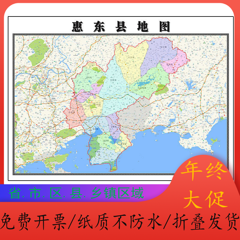 📚 惠东县地图1.15m广东省惠州市折叠版壁画墙贴办公室贴画装饰画