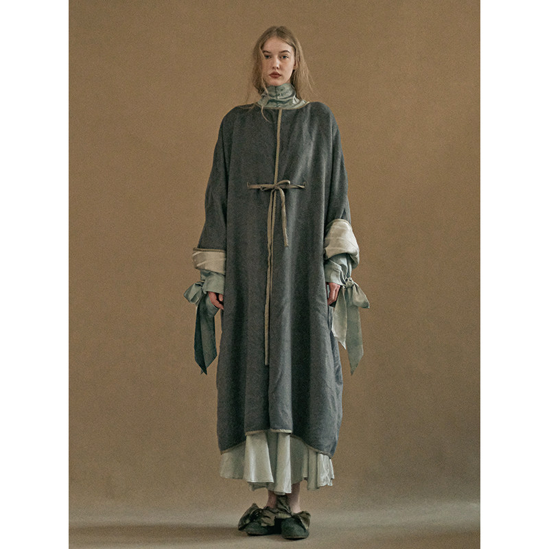 📚 Cha 官方 | Mutedance 青灰色羊毛绑带无领大衣