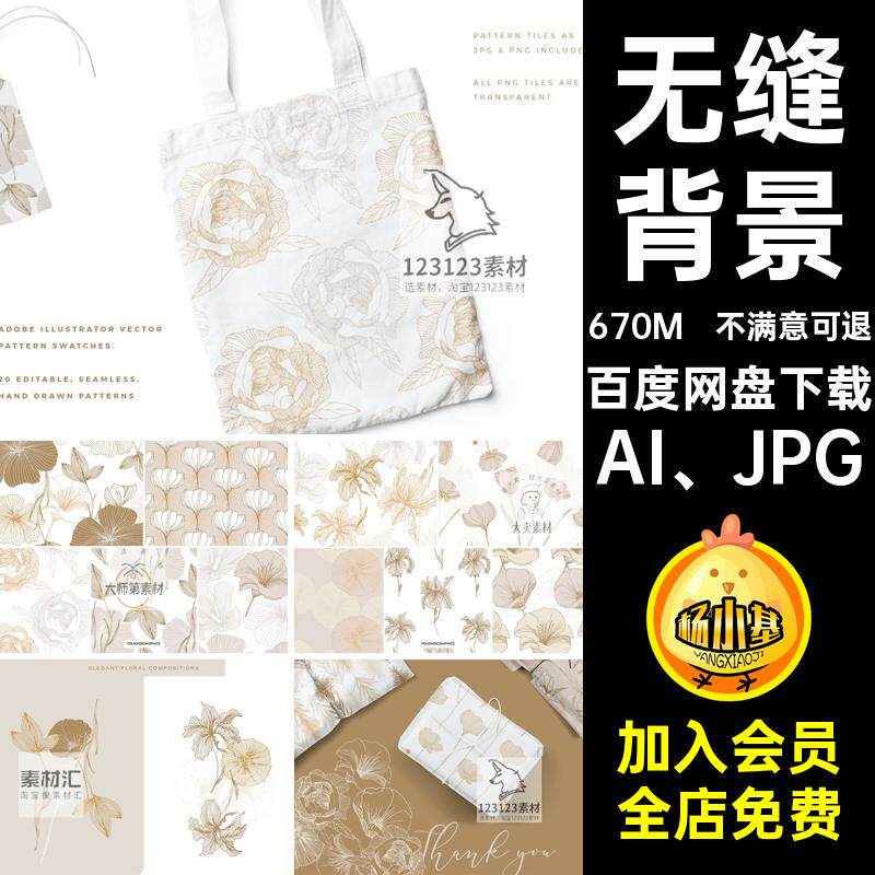 📚 优雅植物花卉无缝拼接印花底纹花纹图案背景AI矢量图设计素材图