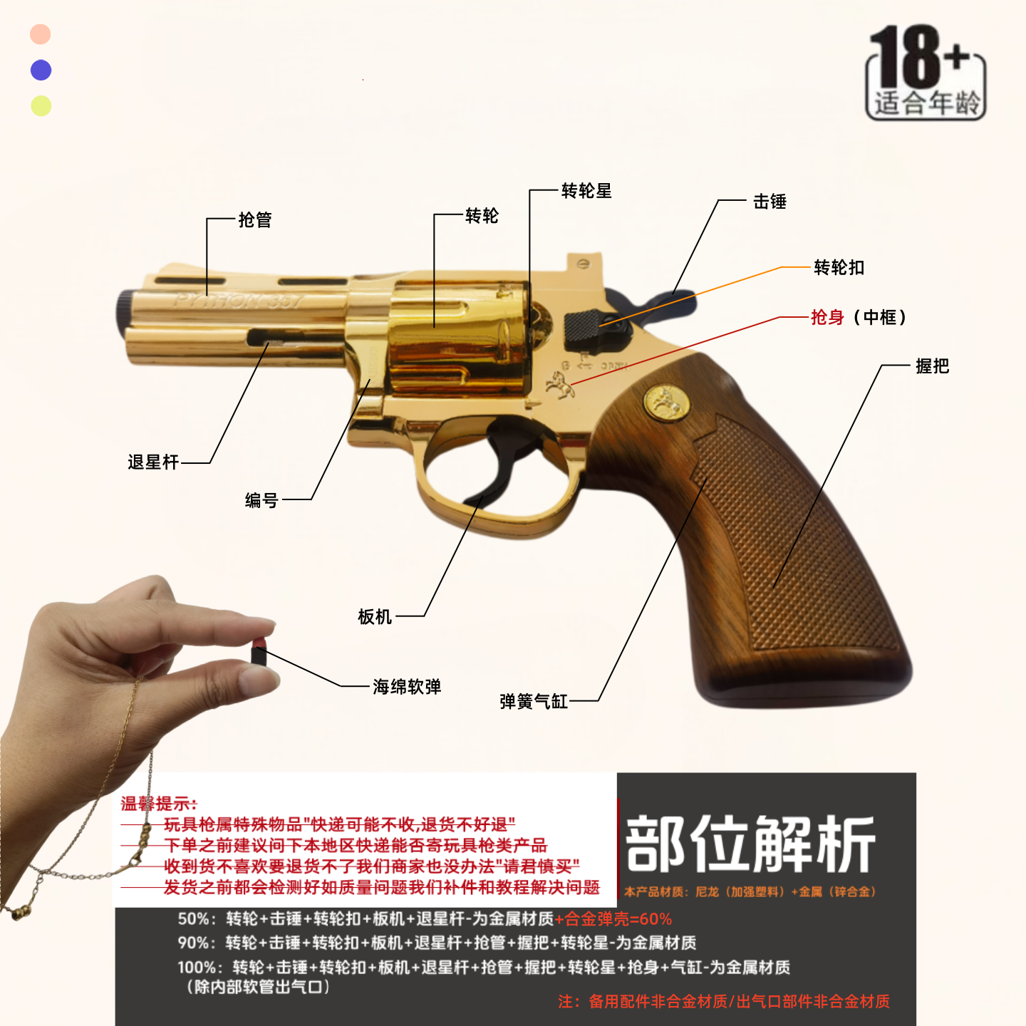 📚 小月亮左轮典藏手动电渡金ZP5全合金属357钨钢色软弹枪玩具礼盒装