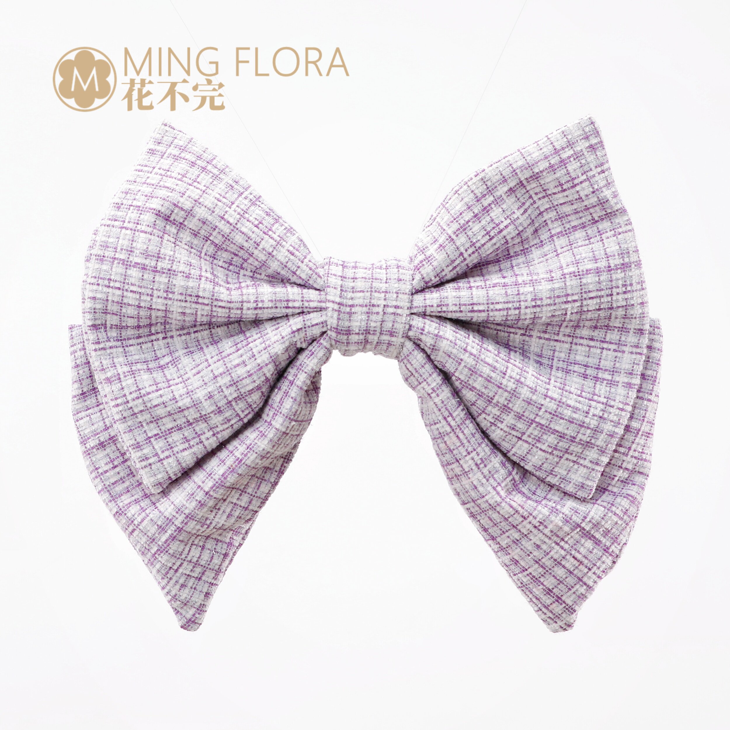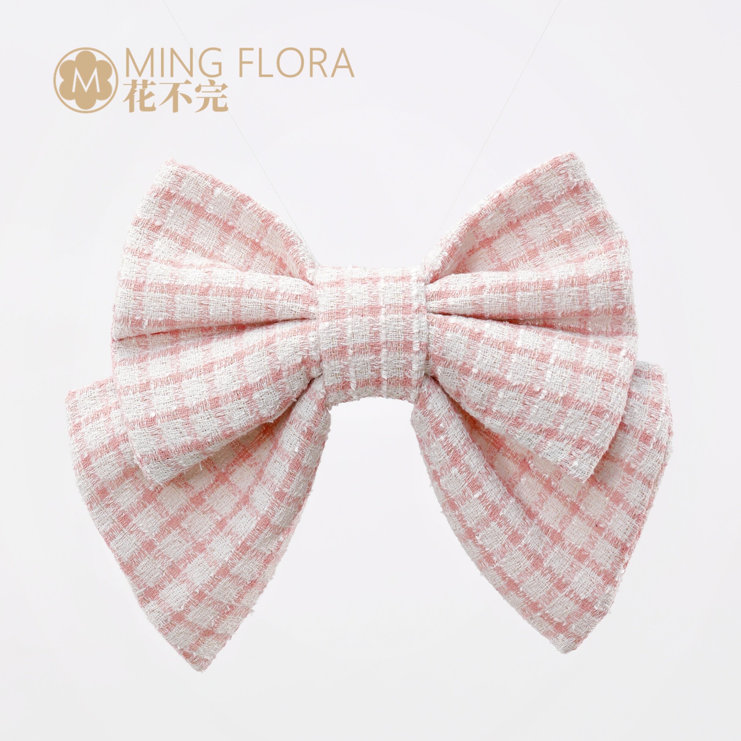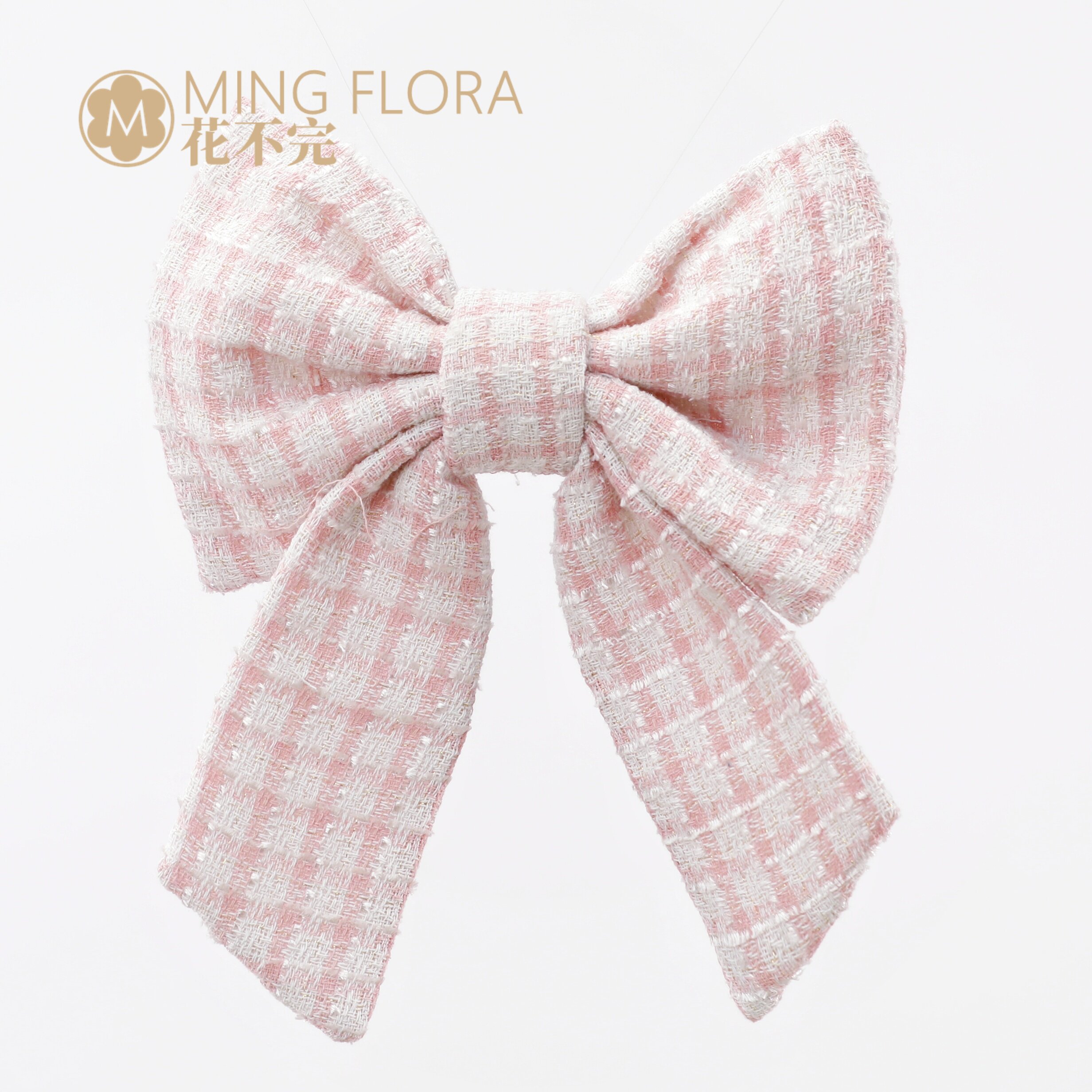 📚 花不完小香港风复古千鸟格子黑白金粉紫毛呢布料大蝴蝶结定做