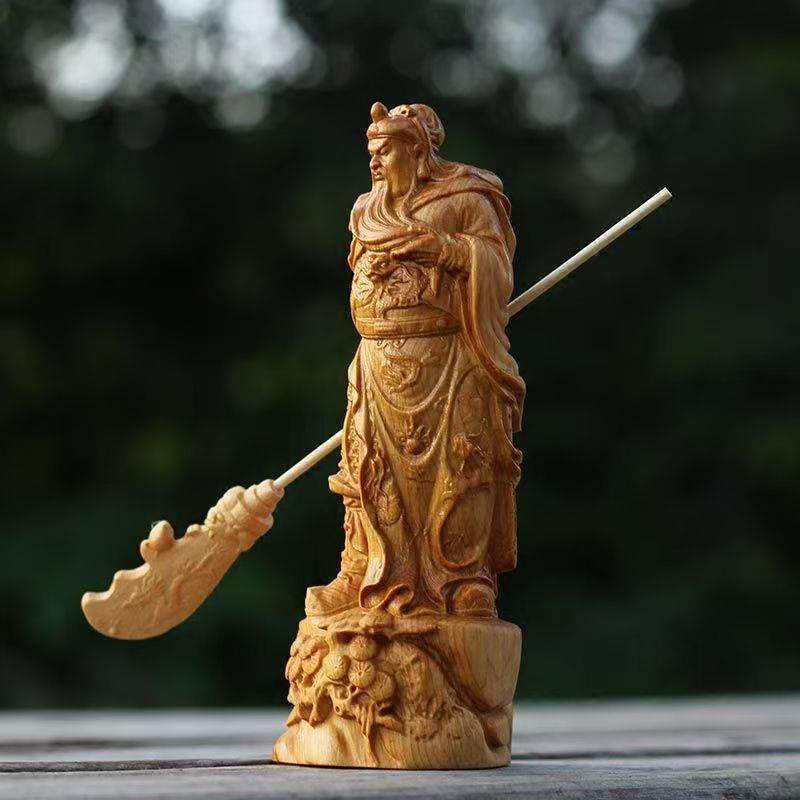 📚 崖柏神勇关公武财神关羽关二爷伽蓝菩萨家居客厅木雕玄关实木摆件