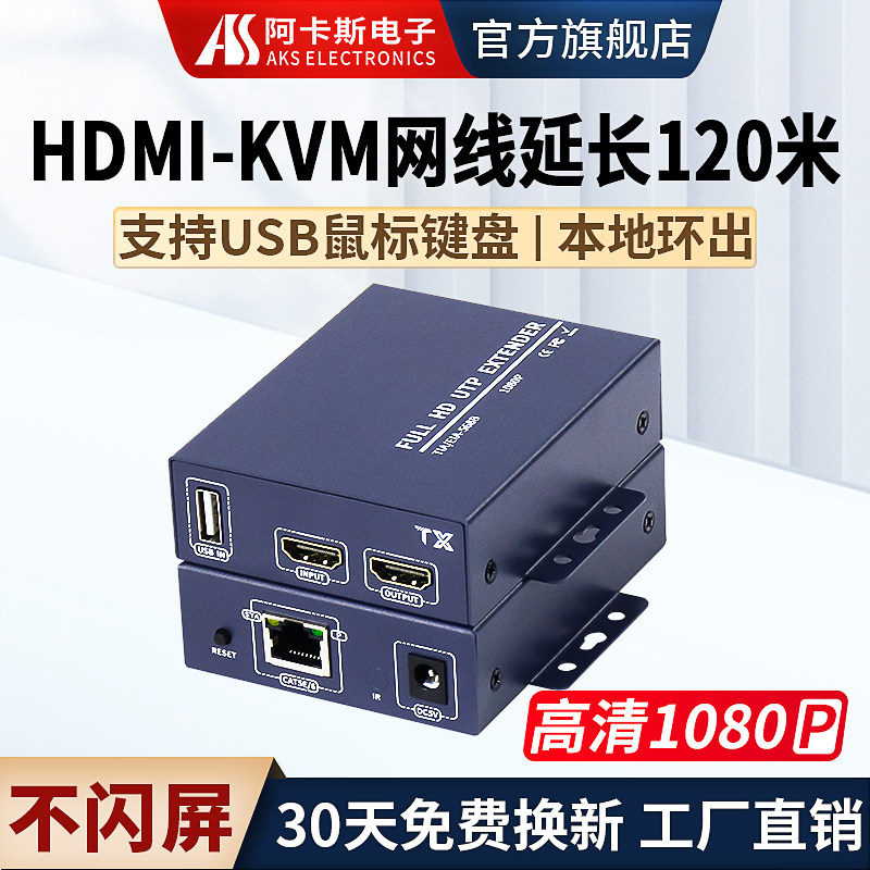 📚 HDMI网线延长器1080P高清网络信号增强器120米带USB鼠标键盘触摸屏转RJ45口传输KVM网络传输监控工程 阿卡斯