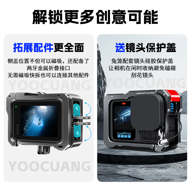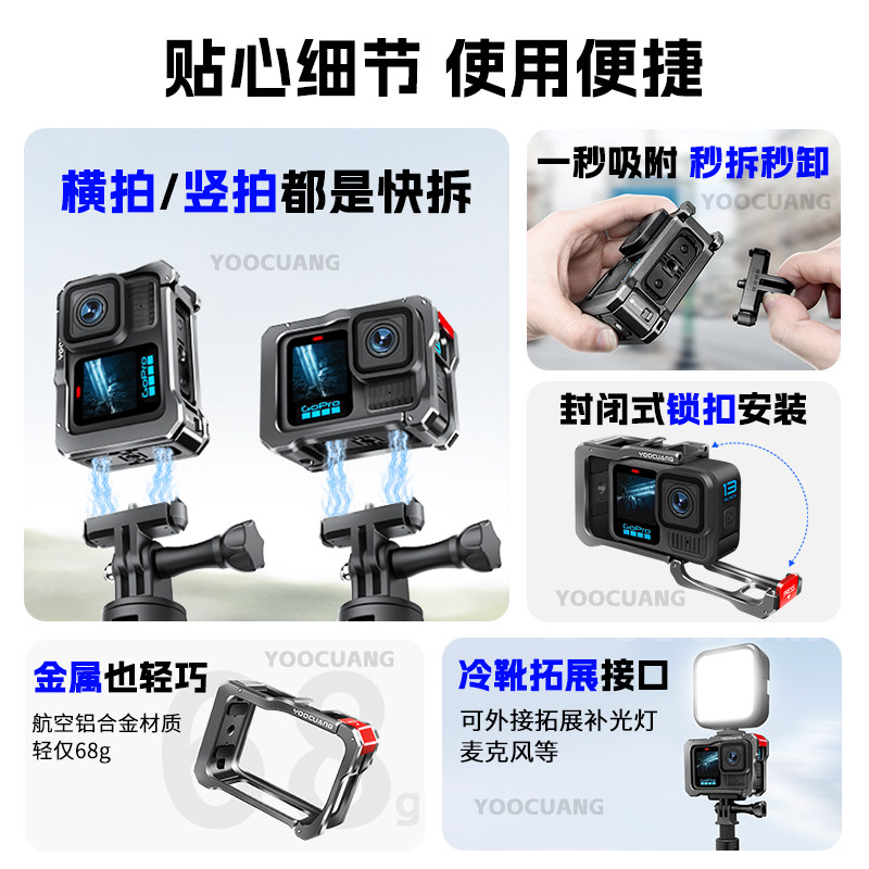 📚 【顺丰包邮】适用GoPro13金属兔笼横竖磁吸gopro12/11/10/9兔笼保护套散热边框运动相机铝合金拓配件送收纳包