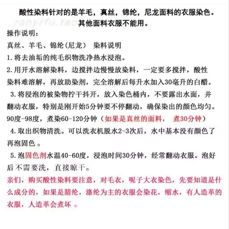 📚 酸性染料羊毛锦纶尼 真丝骨头染色金刚果木头染料染色剂旧衣翻新