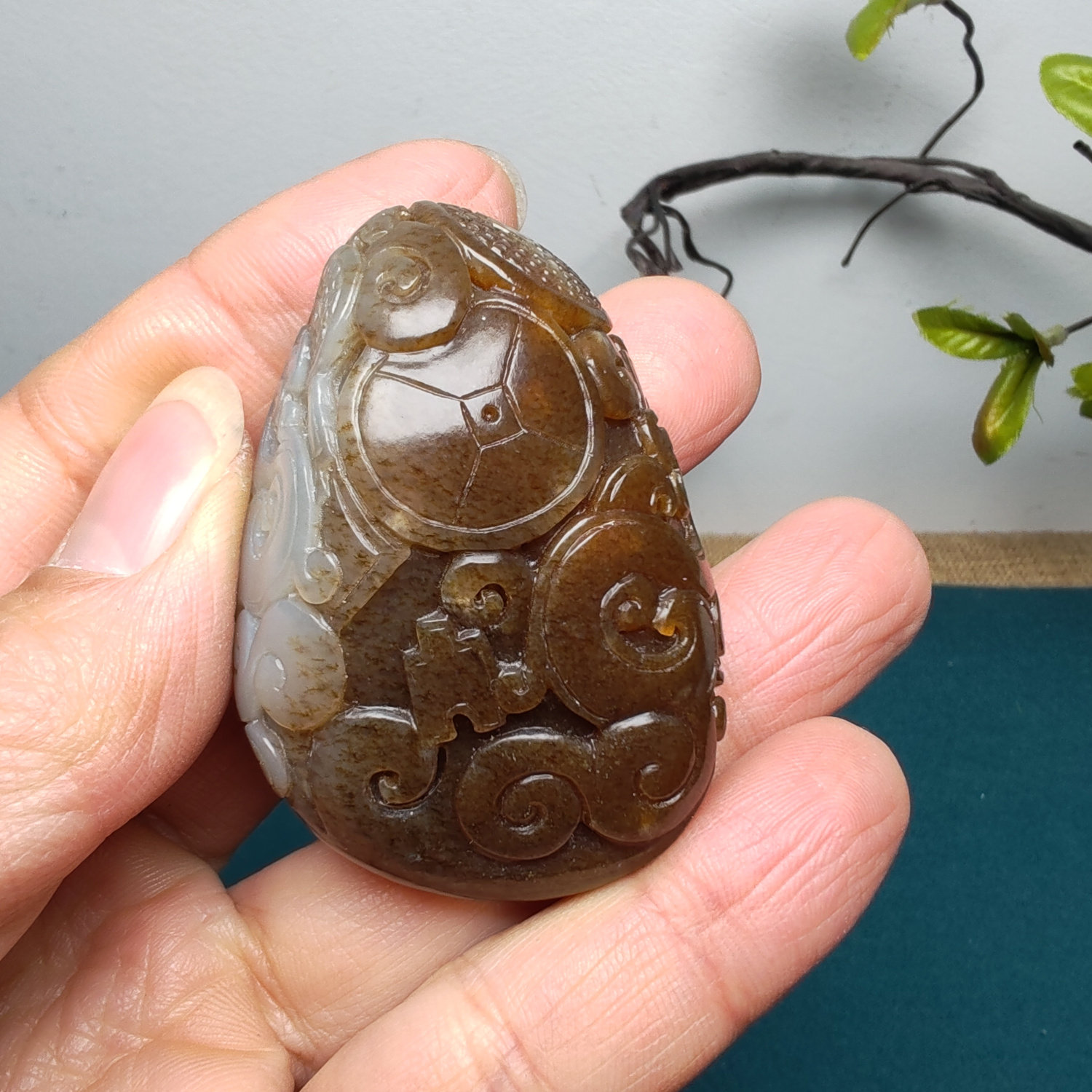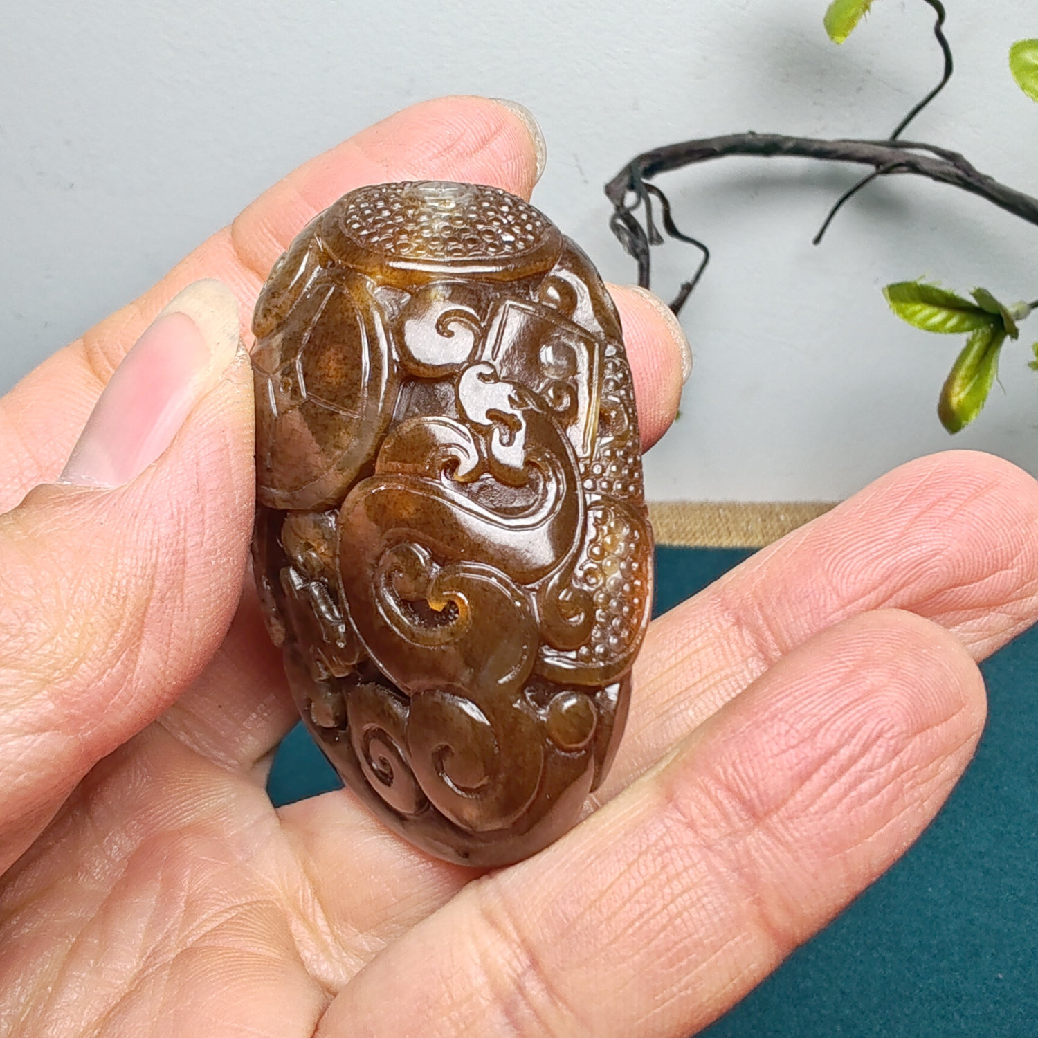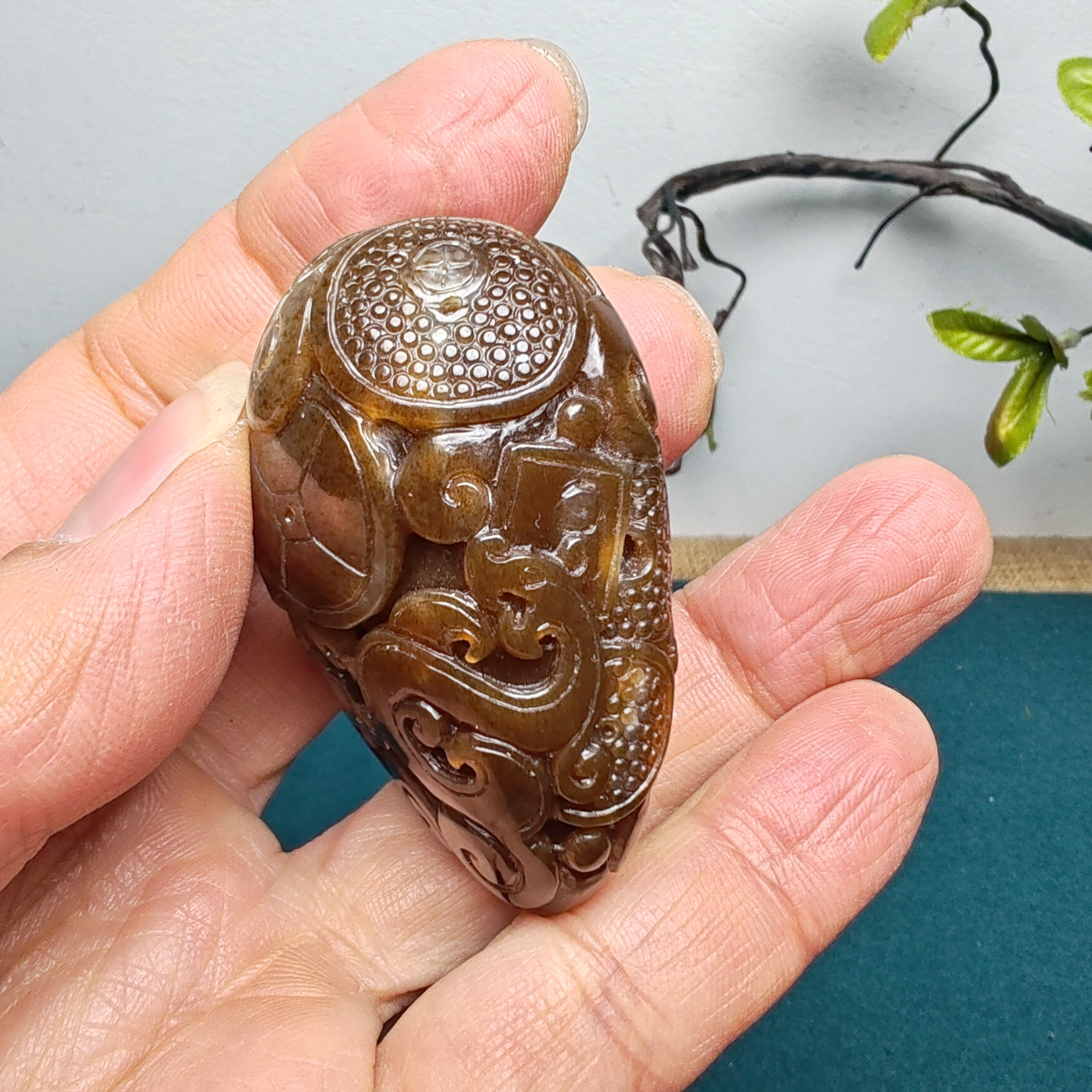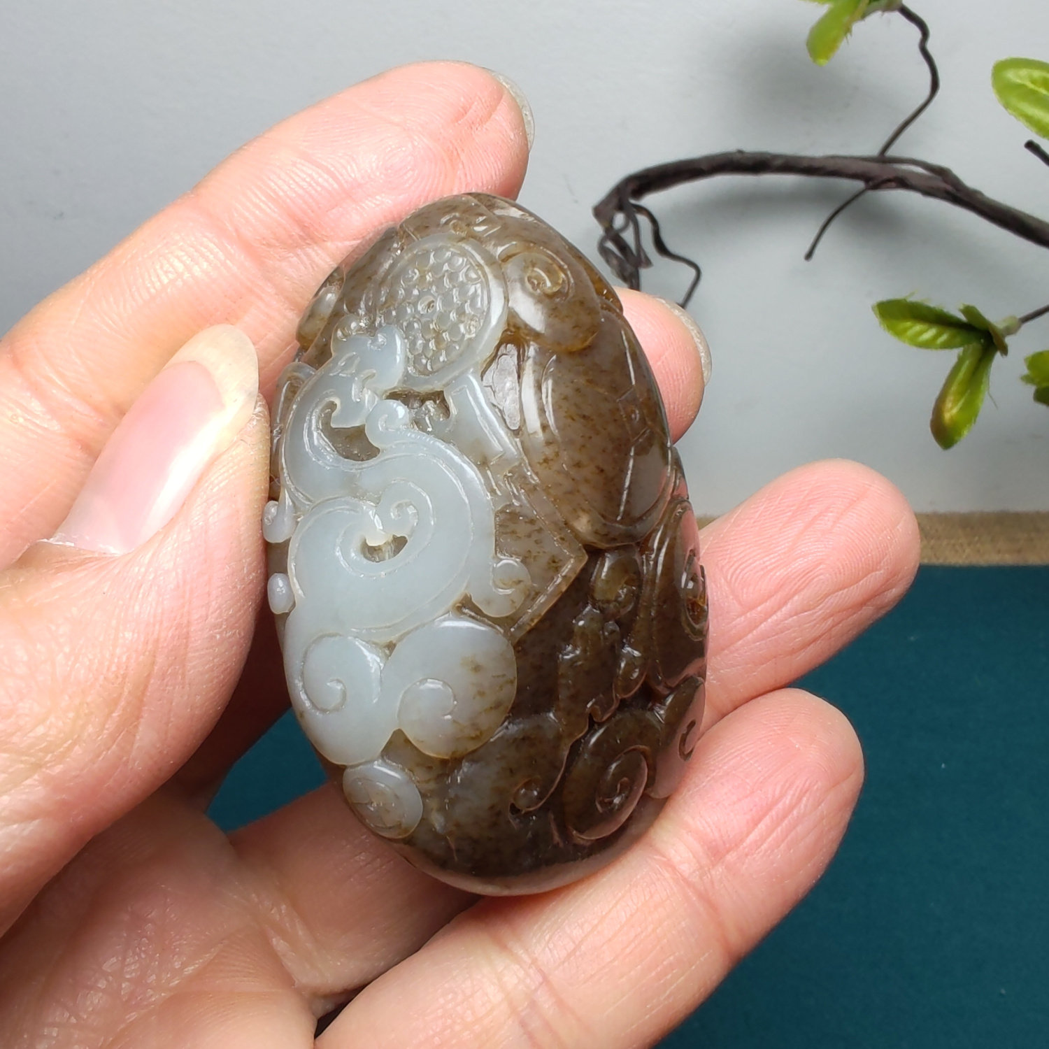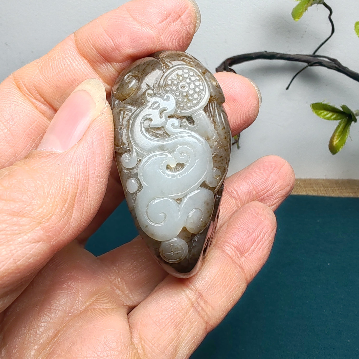 📚 新疆和田玉且末糖白玉仿古龙凤锦灰堆小手把件精品男女龙凤呈祥