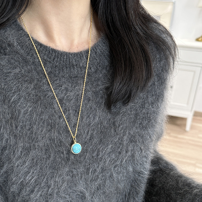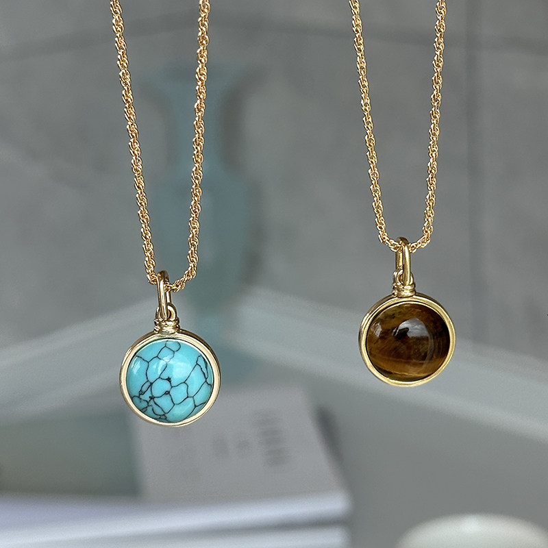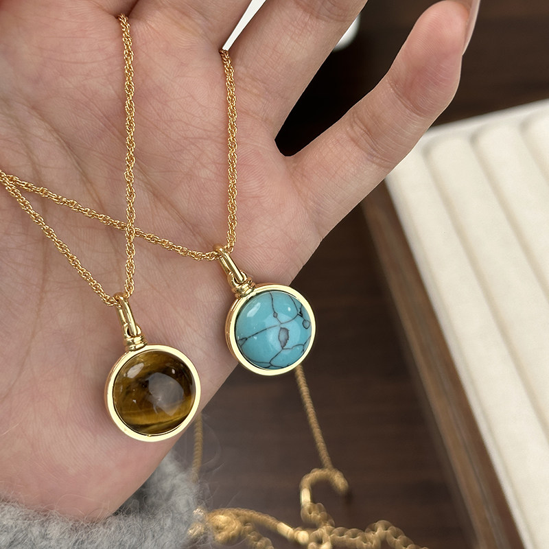 📚 方糖家 秋冬双面绿松虎眼石圆球麻花项链高级感轻奢时尚毛衣链女