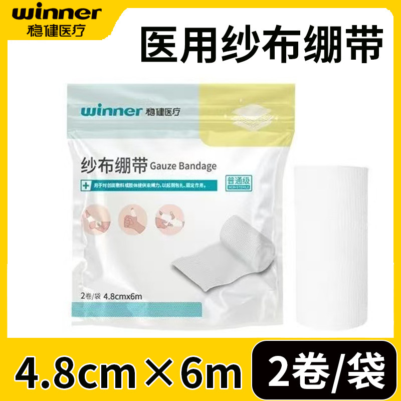 📚 稳健医用纱布绷带伤口敷料包扎固定纱布卷2卷/袋