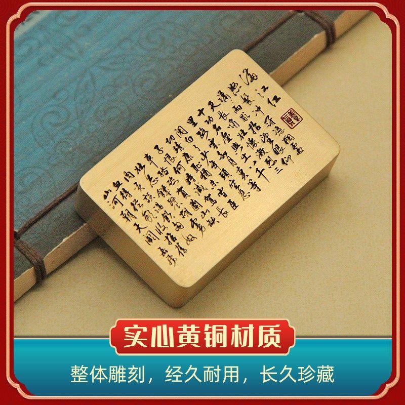 📚 书边满江红长方形黄铜镇纸文房四宝用品定制礼品把件书法压纸镇尺
