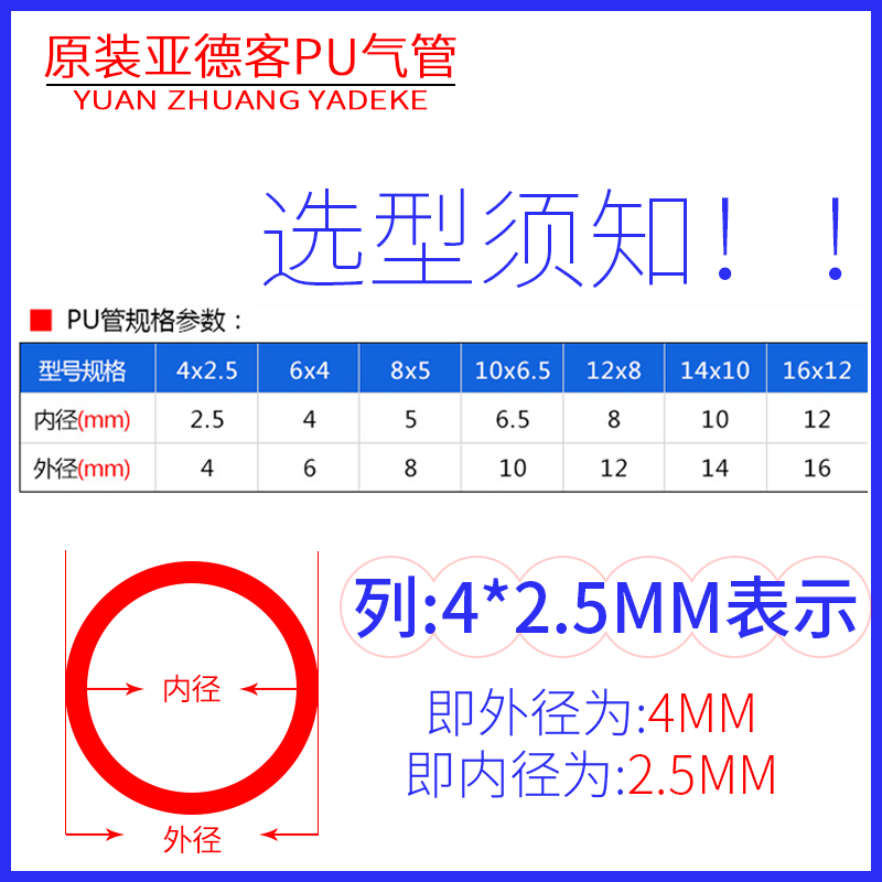 📚 PU气管原装亚德客US98A 4X2.5 6X4 8X5 10X6.5 12X8 16X11系列