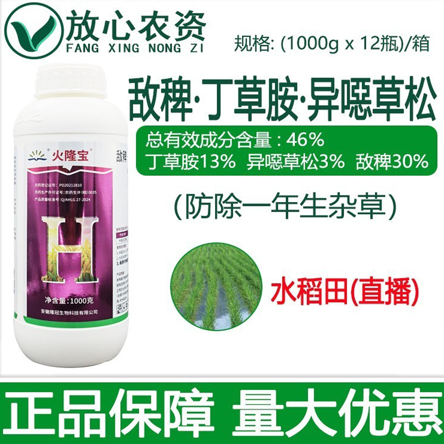 📚 隆冠火隆宝46%敌稗丁草胺异噁草松 水稻田一年生杂草专用药除草剂